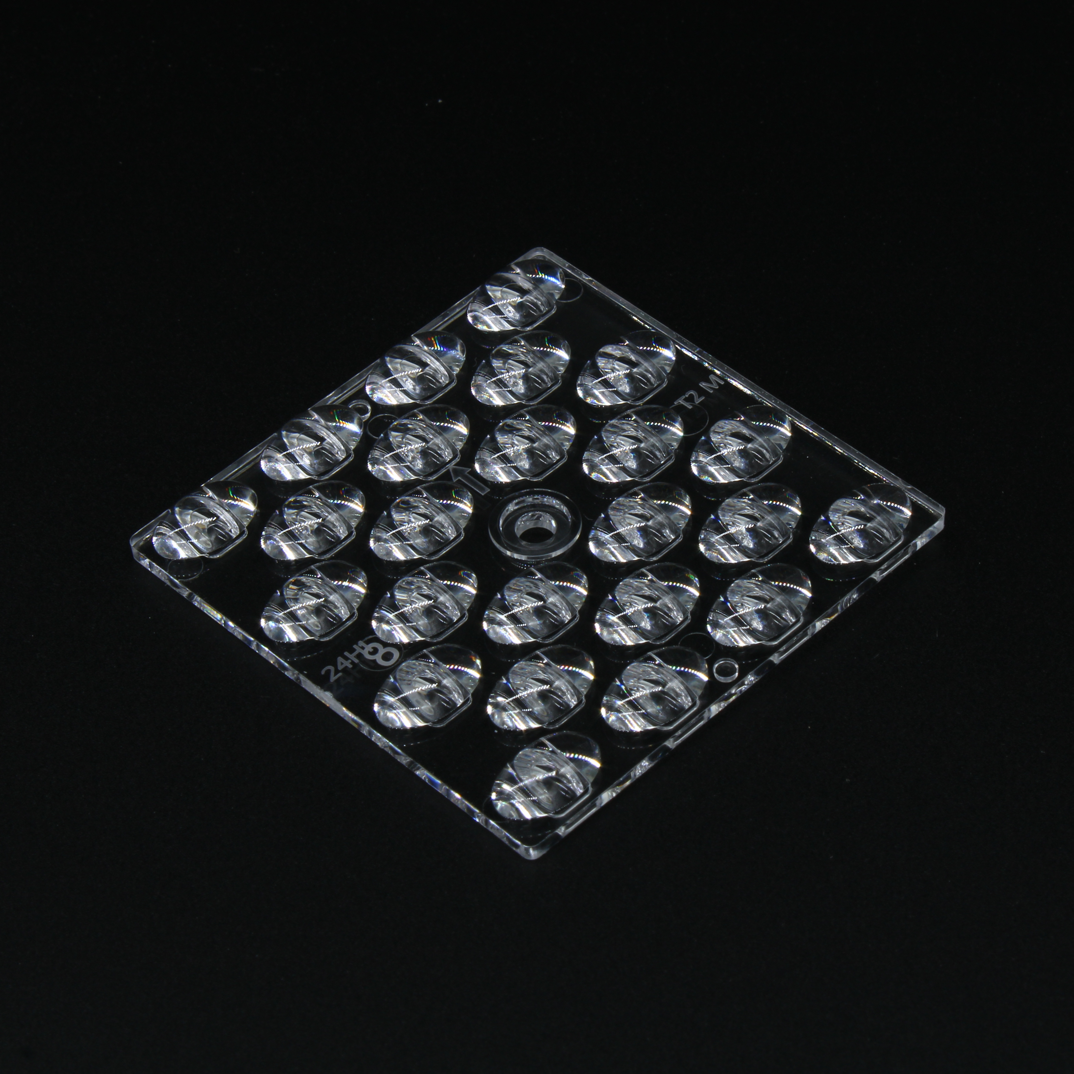 Групповая квадратная линза на 24 светодиода 3030/2835 эфф=93%, диаграмма T2M-D, 50x50mm H:4.09mm, PC