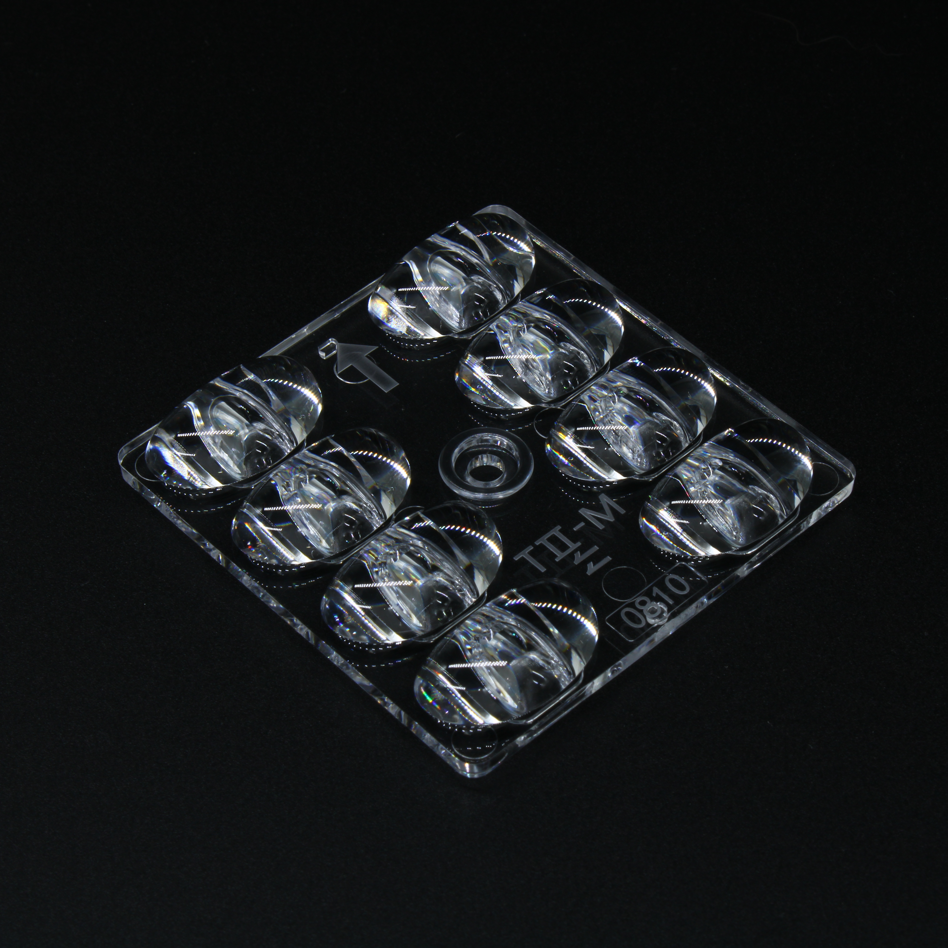 ARST50D8LED5050T2M-cutoff - Групповая квадратная линза на 8 светодиодов 5050/3535/3030 , диаграмма T2M-cutoff, PC, 50x50mm H:6.62mm