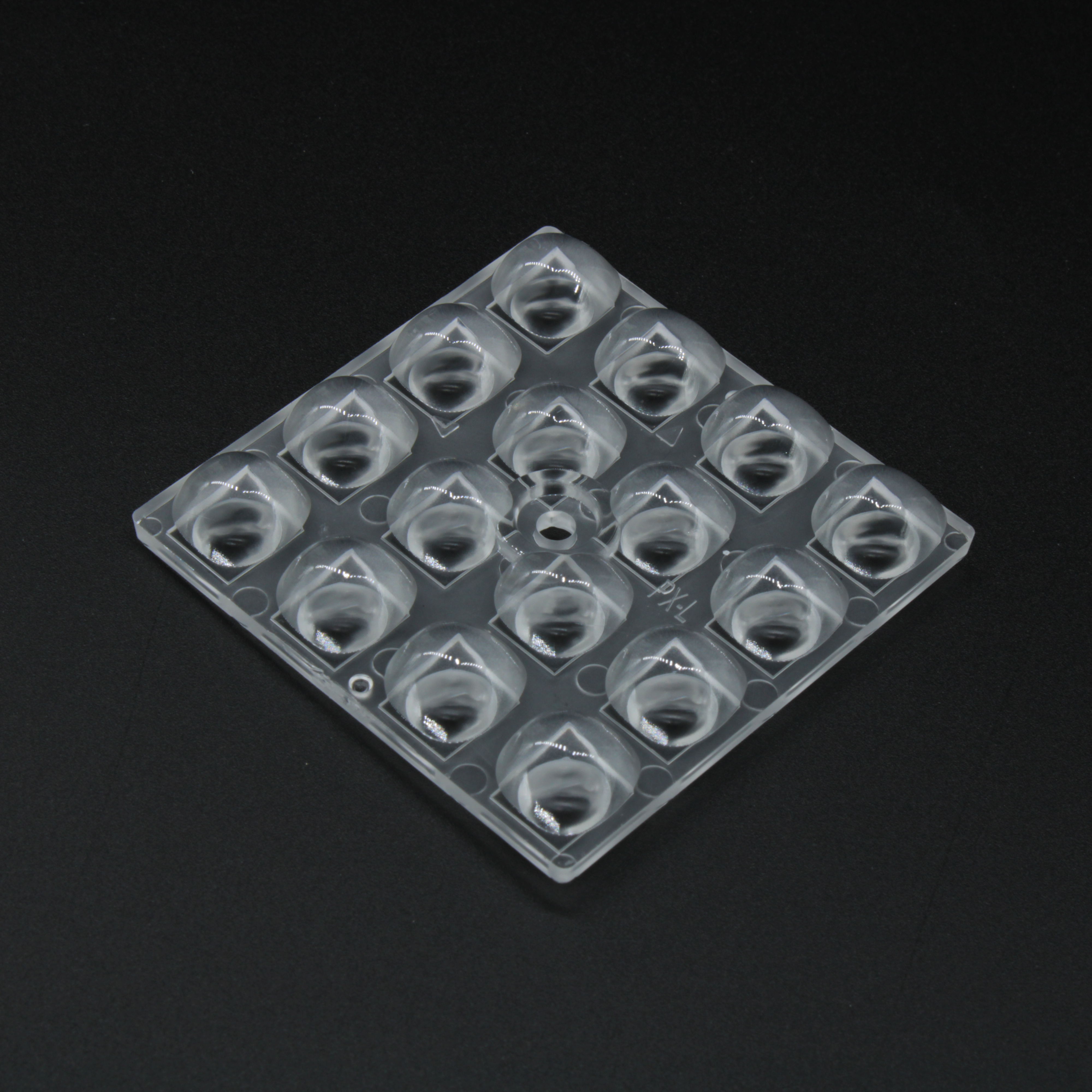 ARX50D16LED3030PX-L - Групповая квадратная линза 4x4 на 16 светодиодов 3030 эфф=93% пешеходная ассиметр. диаграмма (левая сторона), 50x50mm H:4,4mm, PMMA
