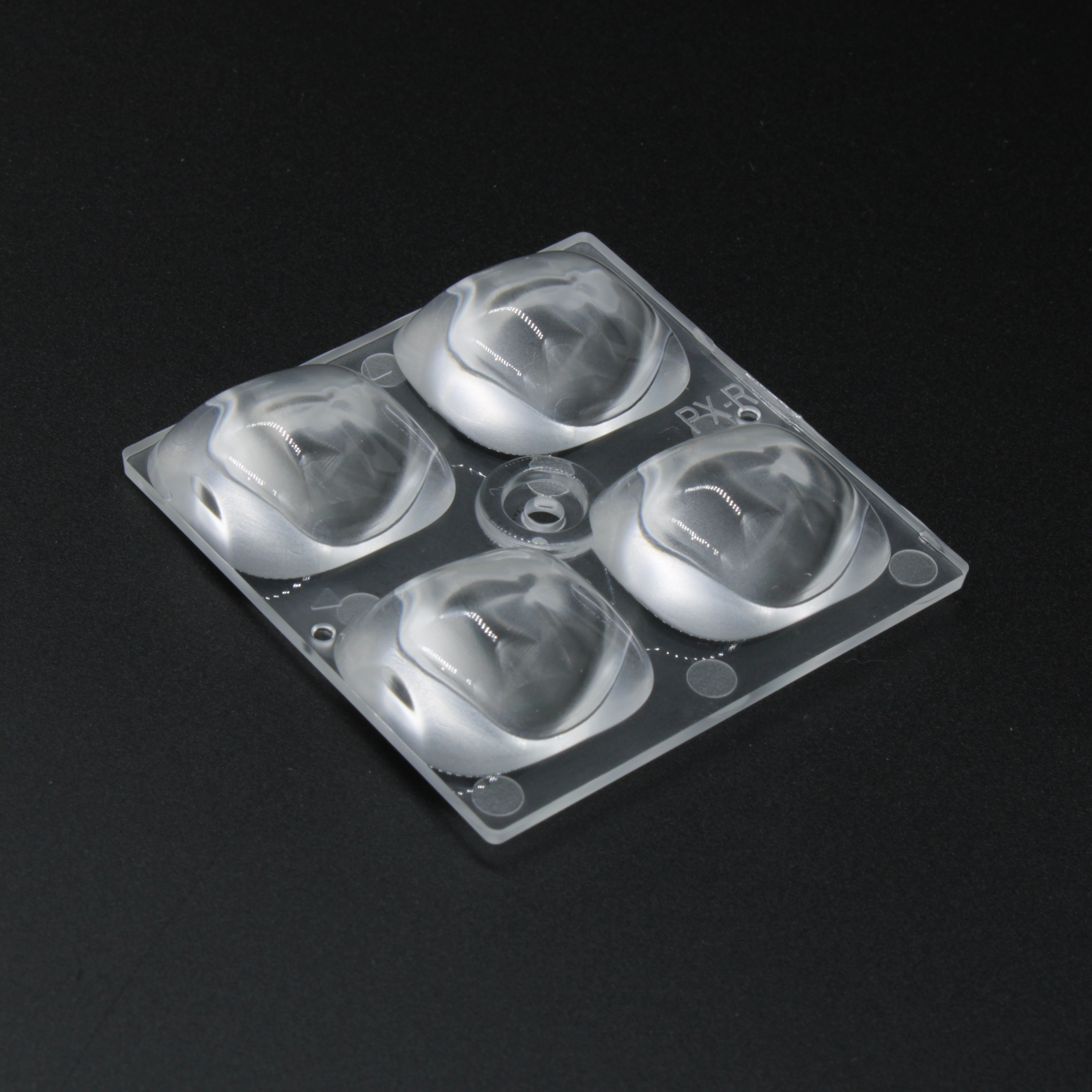 ARX50D4LED5050PX-R - Групповая квадратная линза 2x2 на 4 светодиода 5050/3030 эфф=93% пешеходная ассиметр. диаграмма (правая сторона), 50x50mm H:9,76mm, PMMA