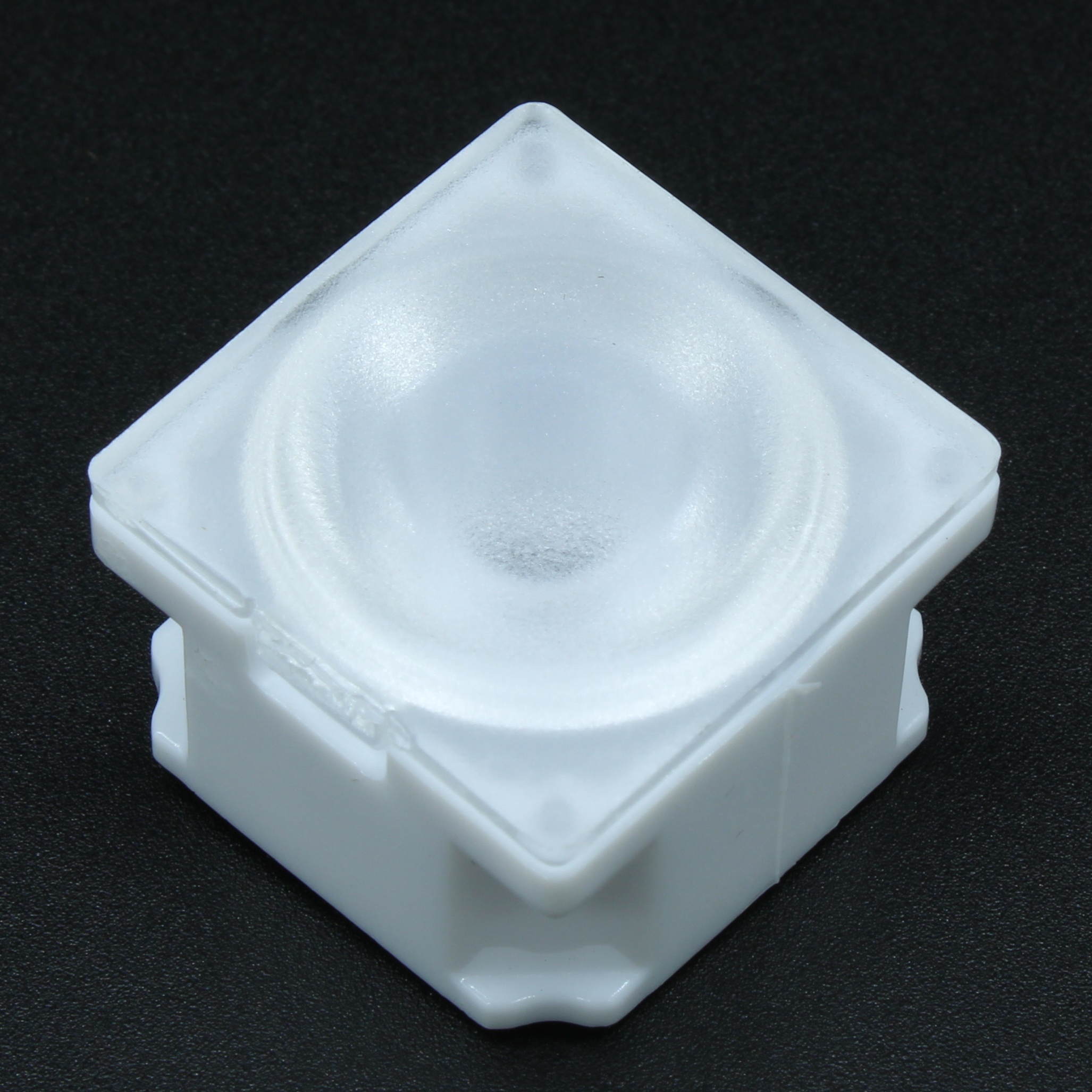 Линза белая с клеевой основой для светодиода 3535/3030, ~30°, 21,57x21,57mm H:13mm, с пинами, PMMA