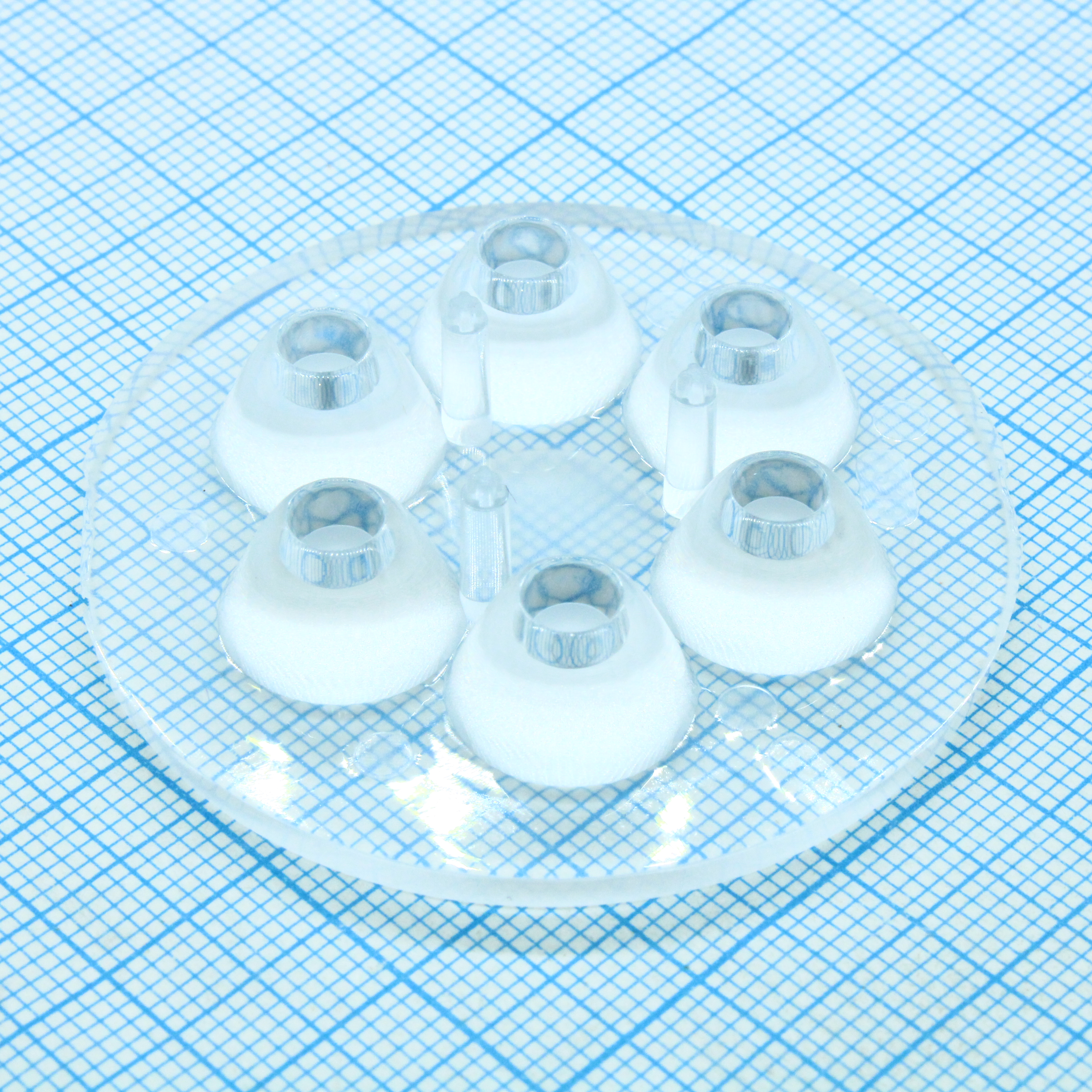 Круглая групповая линза под 6светодиодов, ~30°, D=50 mm H=10,7 mm