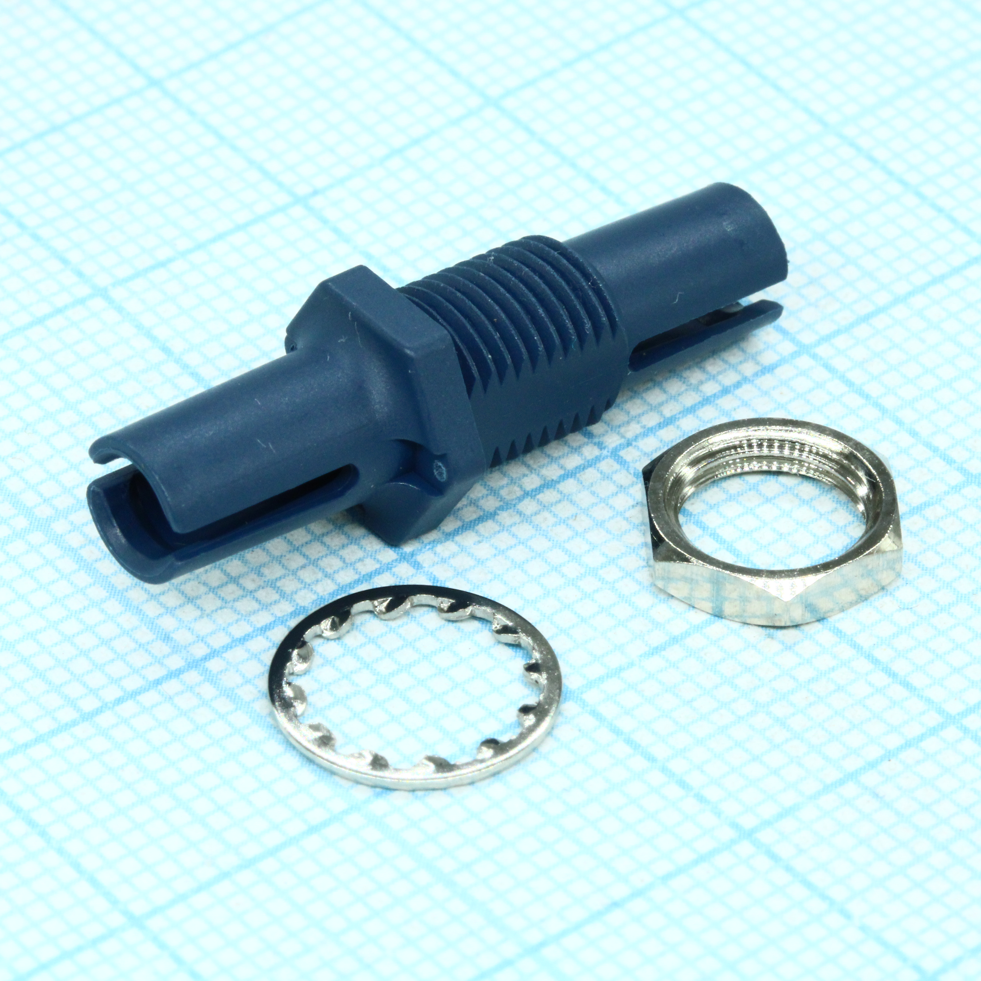HFBR-4515Z - Адаптер VL с гайкой синий (Bulkhead Adapter). Соединяет 2 симплексных соединителя сквозным образом. Этот адаптер может служить для сращивания кабеля в линии с помощью двух симплексных соединителей.