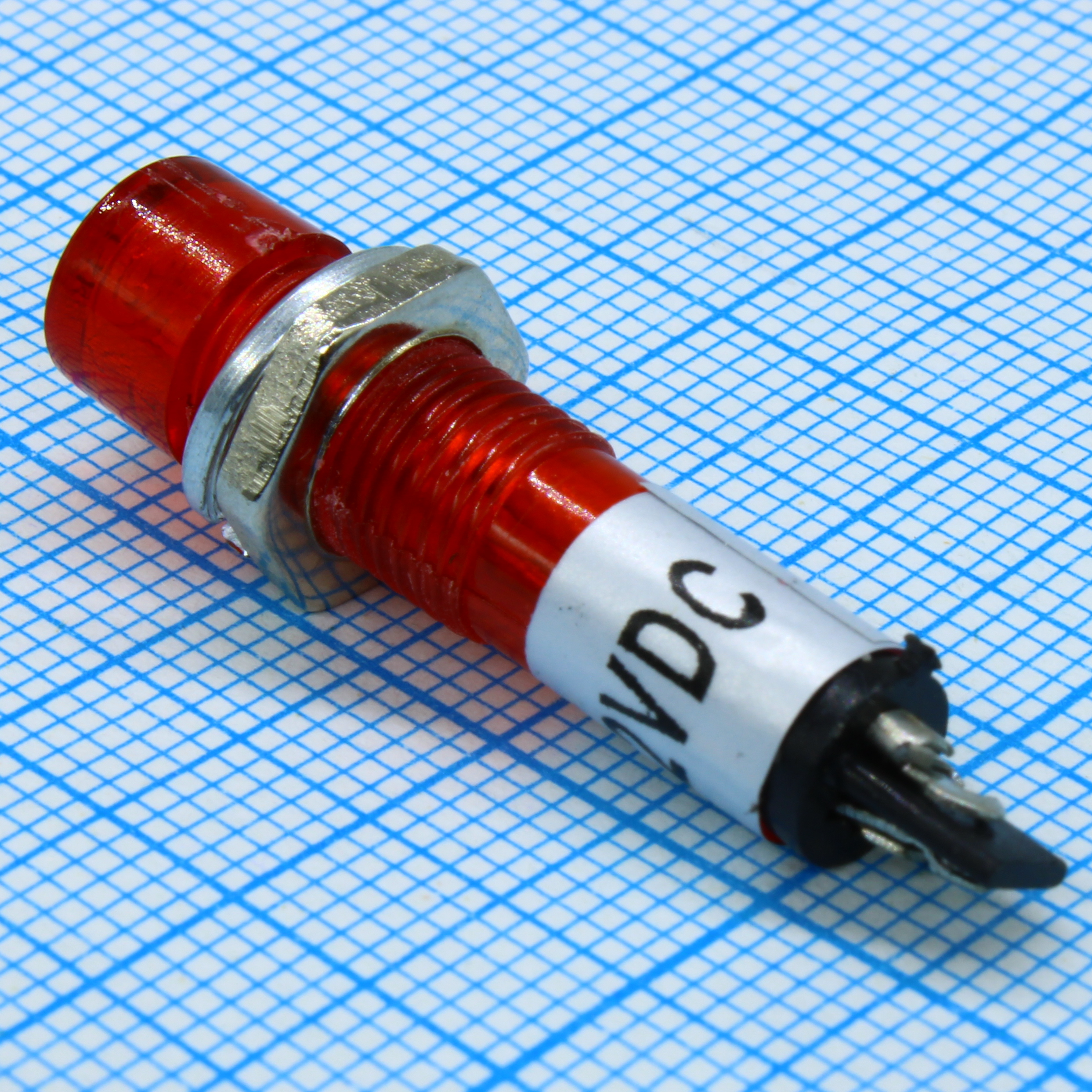 Светодиодный индикатор на панель в отверстие 7мм, красный, 12в