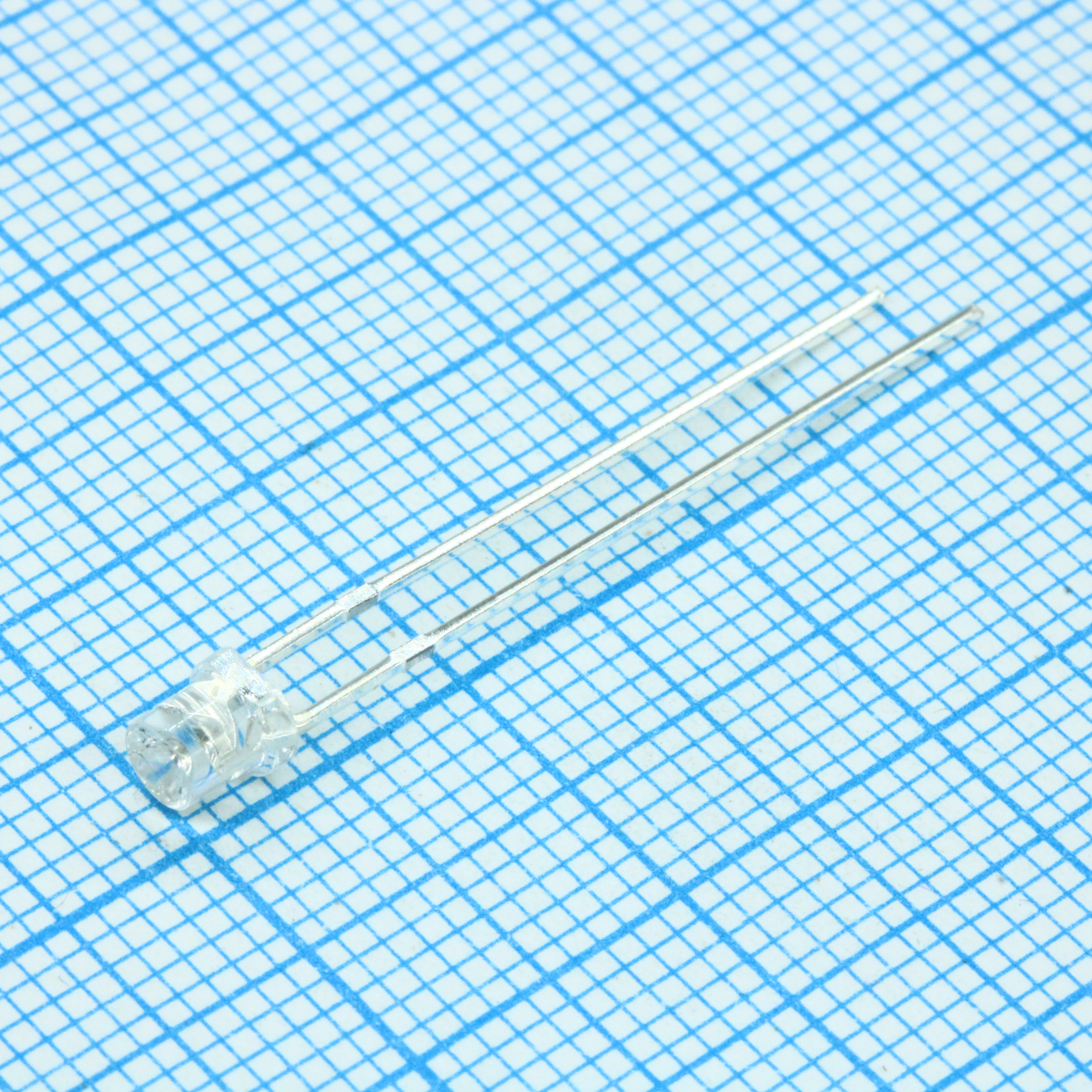 Светодиод 3мм/синий/470нм/1500мкд/прозрачный/75°/цилиндр с конусообразным углублением
