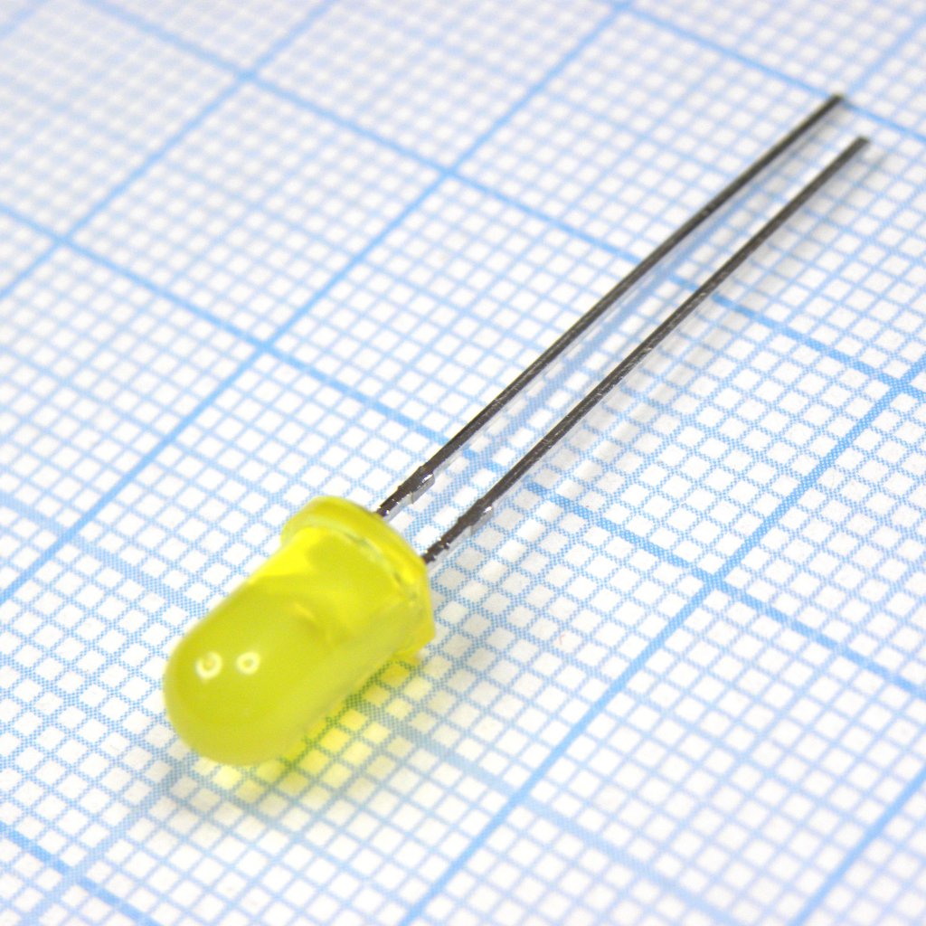 Светодиод 5мм/желтый/585нм/20мкд/60°