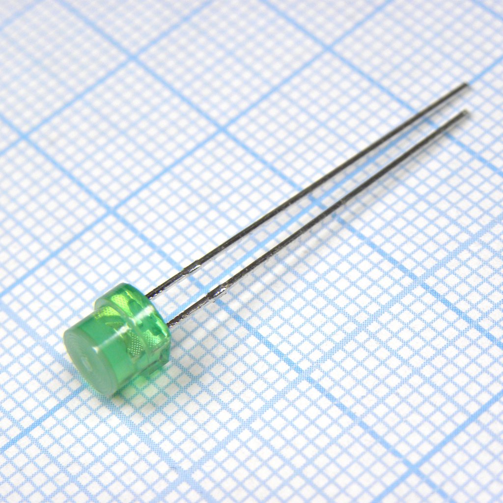 Светодиод 5мм/зеленый/568нм/2-5мкд/цилиндр короткий/100°
