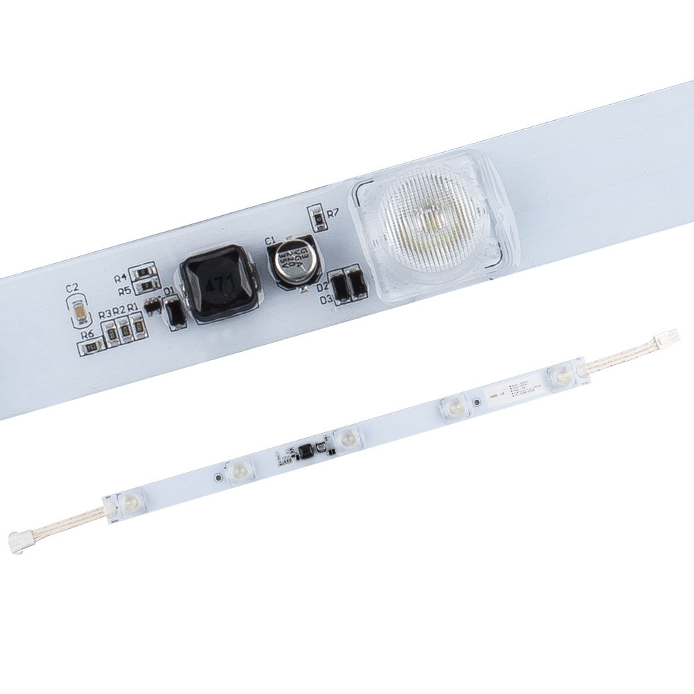 Герметичный светодиодный модуль-линейка IP63, БЕЛЫЙ 6000–7000 К, напряжение 24 В, мощность 15 Вт, св. поток 1050 лм, 5 светодиодов OSRAM, угол 15/45°. Рекомендуемая глубина установки 160–300 мм. Размер 495?27.5?15.6 мм. Гарантия 5 лет.