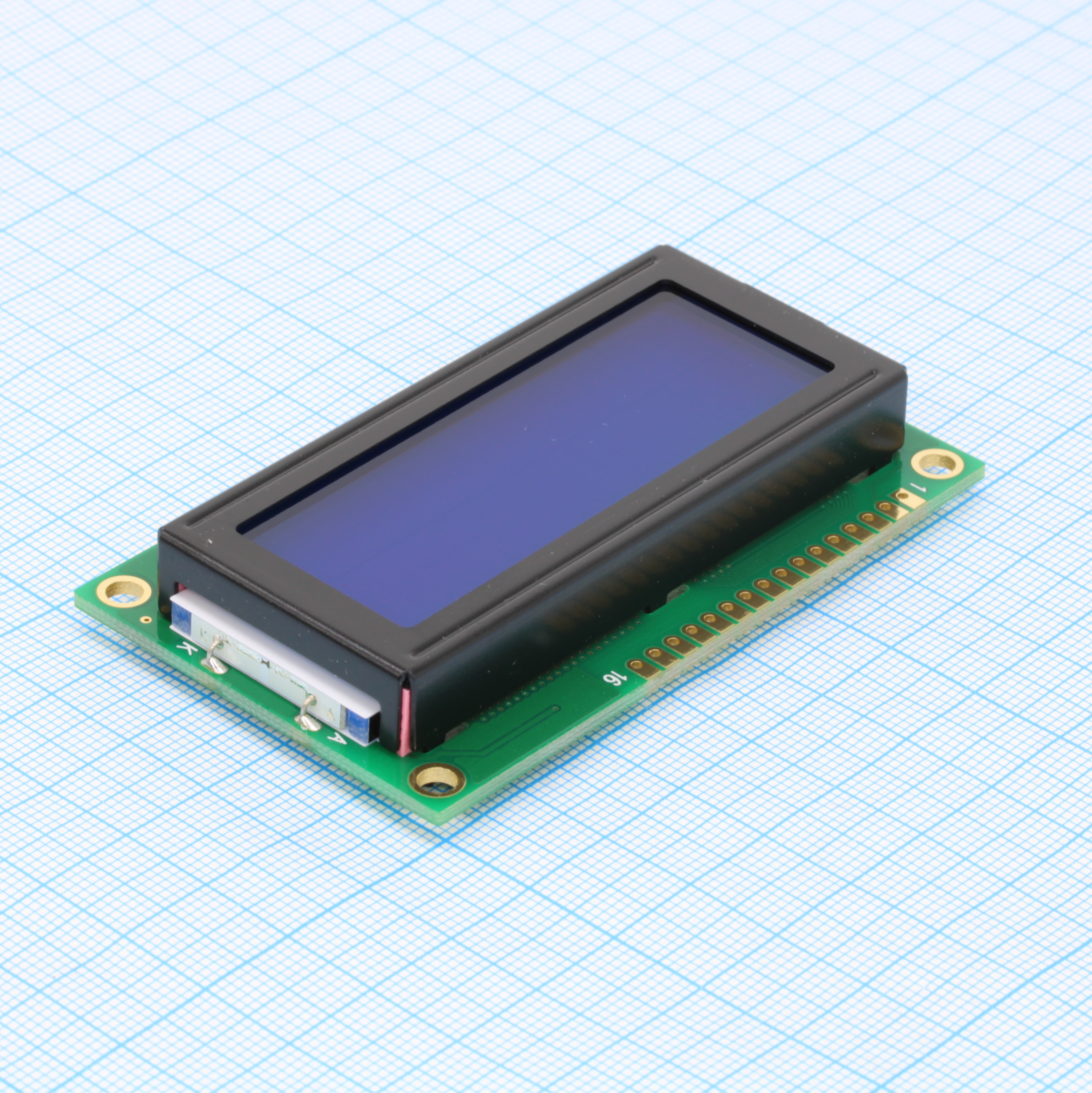 ЖКИ знакосинтезирующий 20 x 4, STN Синий Негативный/прозрачный светодиодная подсветка белая, размеры 77x47 мм, видимая область 60x22.2 мм, -20...70°C, 12 o`clock, 16 контактов сверху