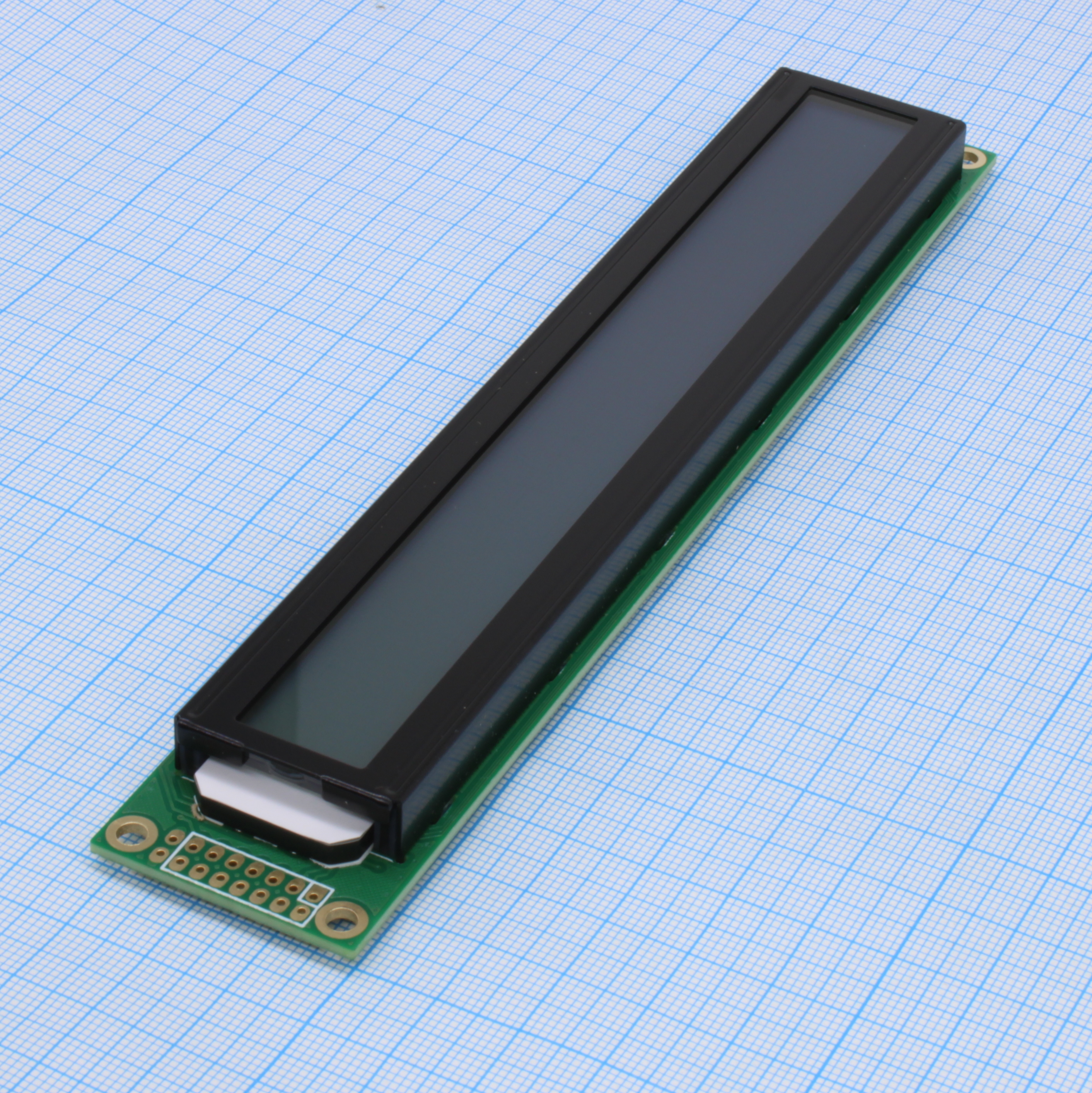 ЖКИ знакосинтезирующий 40 x 2, STN Серый Позитивный/прозрачно-отражающий светодиодная подсветка желто-зеленая, размер 182x33,5 мм, видимая область 155,1х16 мм, питание 5В, 0...50°C, 6 o`clock
