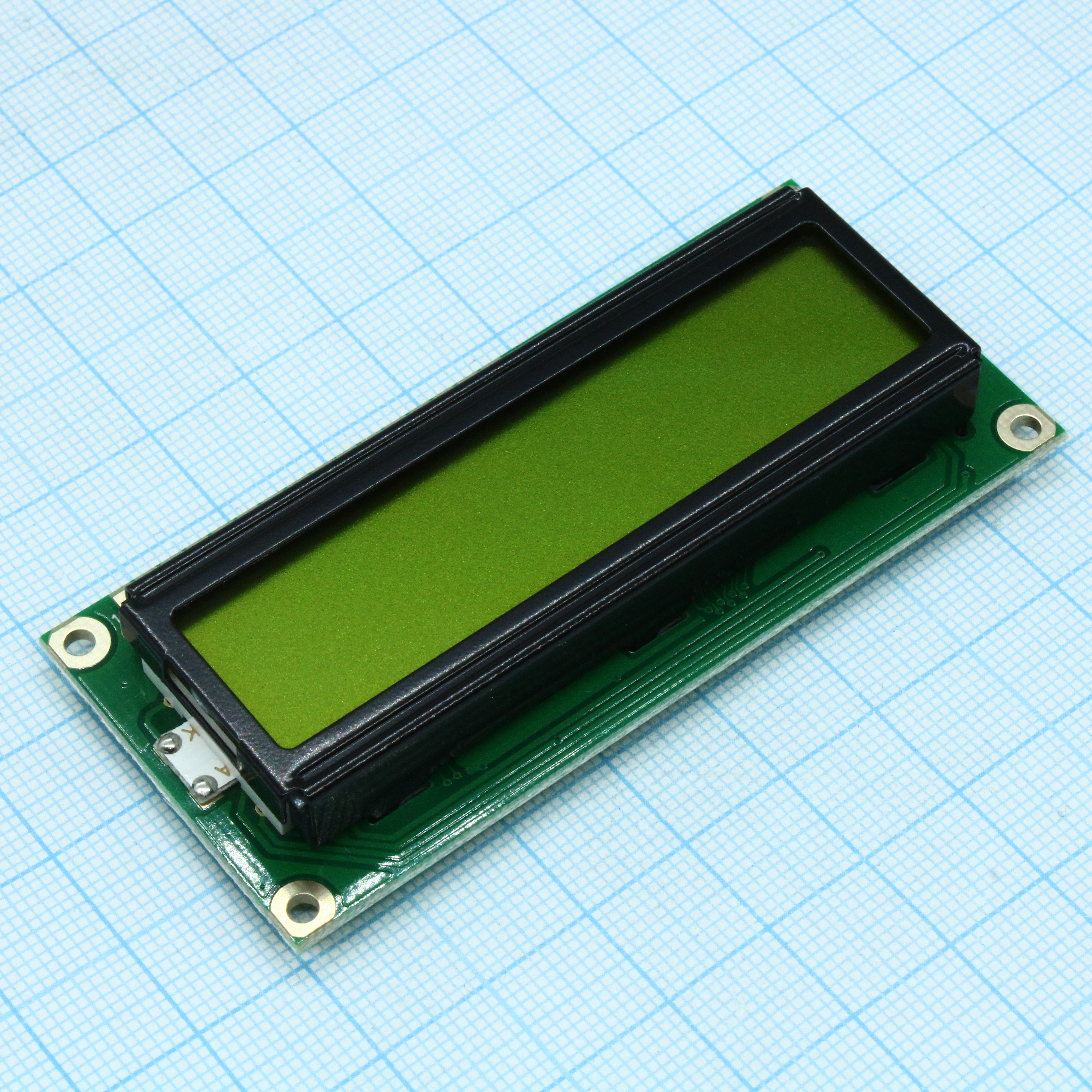 ЖКИ знакосинтезирующий 16 x 1, STN Желто-зеленый Позитивный/прозрачно-отражающий светодиодная подсветка желто-зеленая размеры 80x36 мм, видимая область 66x16 мм, -20...70°C, контактные площадки сверху 15 выводов