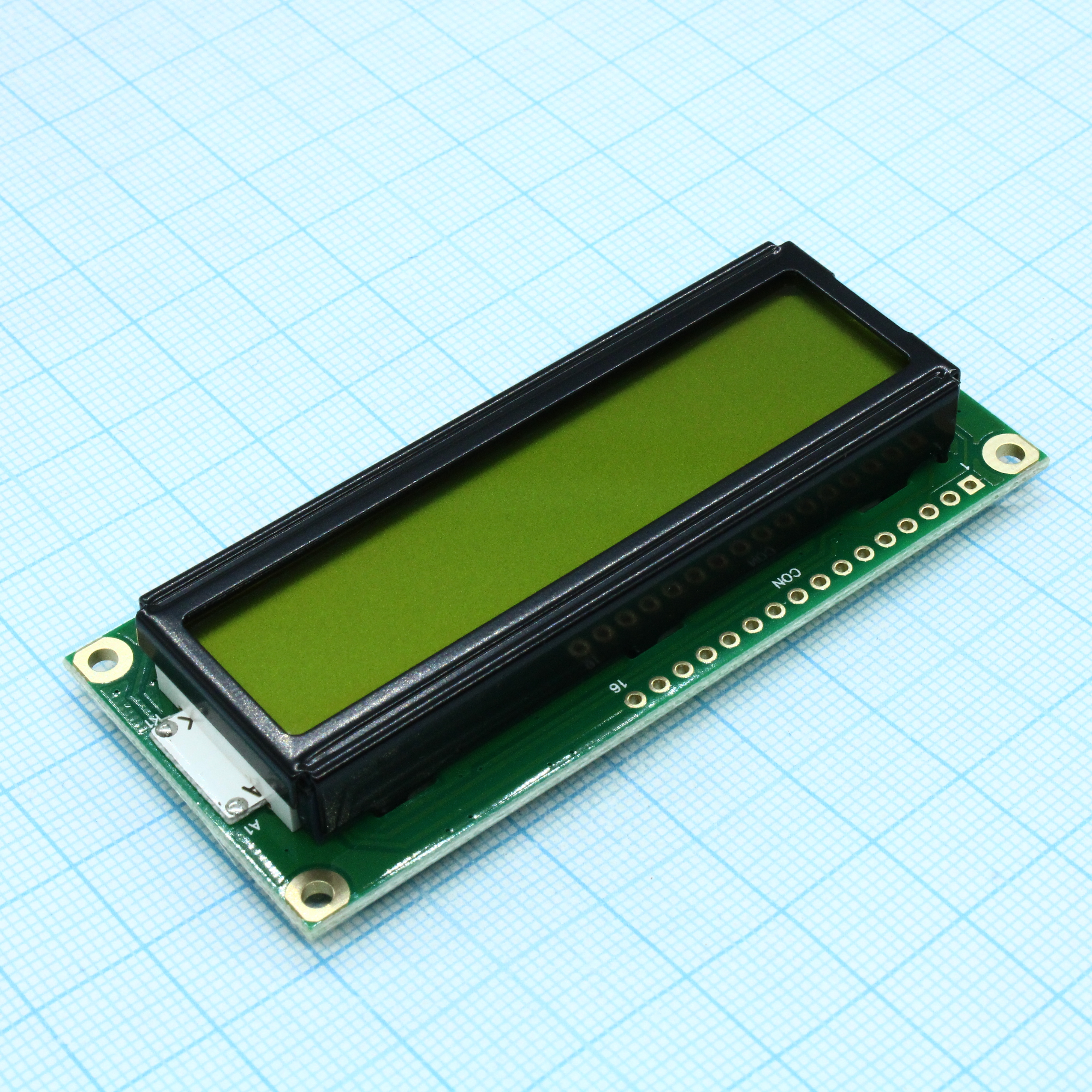 ЖКИ знакосинтезирующий 16 x 2, STN Желто-зеленый Позитивный/прозрачно-отражающий светодиодная подсветка желто-зеленая размеры 80x36 мм, видимая область 66x16 мм, -20...70°C