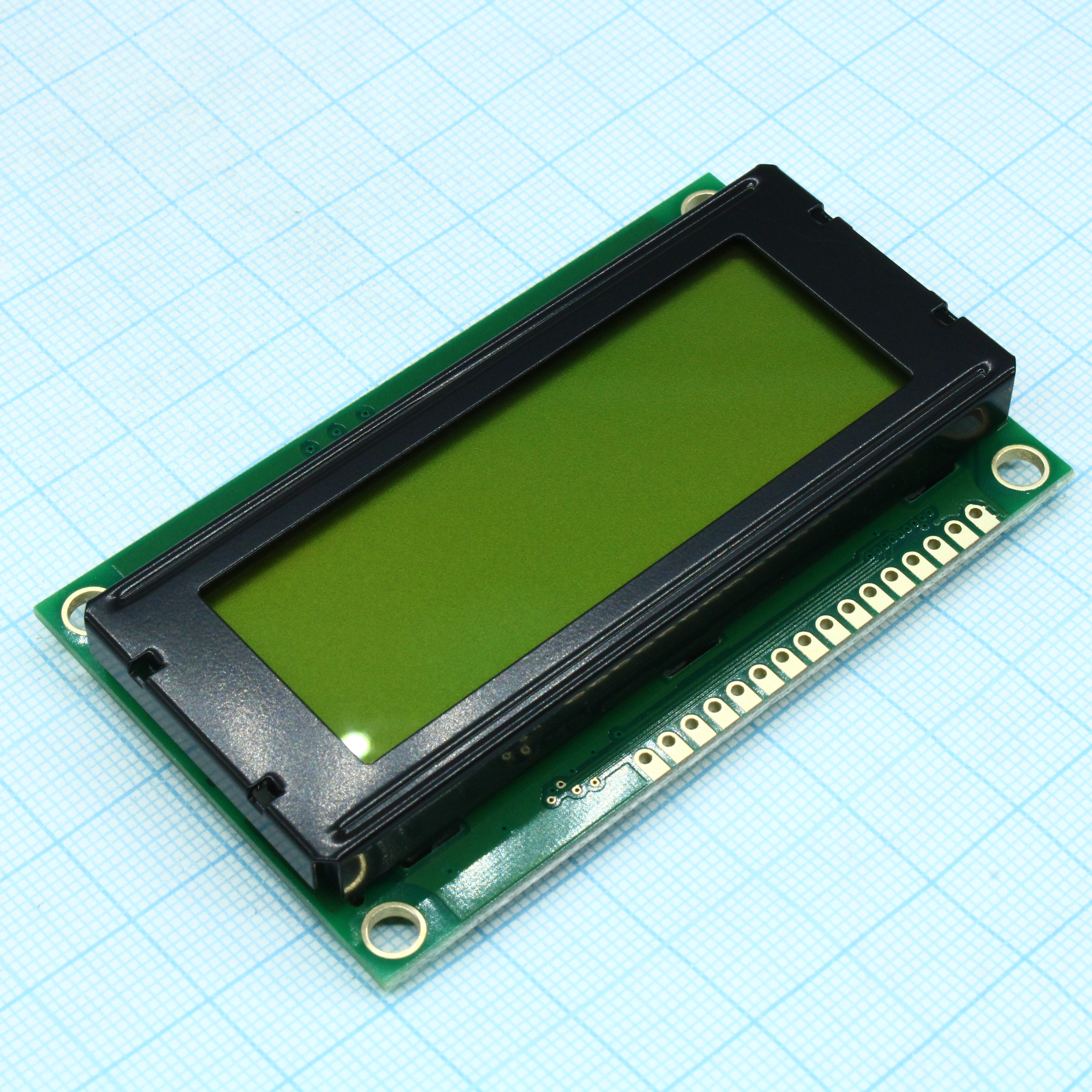 ЖКИ знакосинтезирующий 20 x 4, STN Желто-зеленый Позитивный/прозрачно-отражающий светодиодная подсветка желто-зеленая размеры 77x47 мм, видимая область 60x22 мм, -20...70°C, контактные площадки сверху 16 выводов