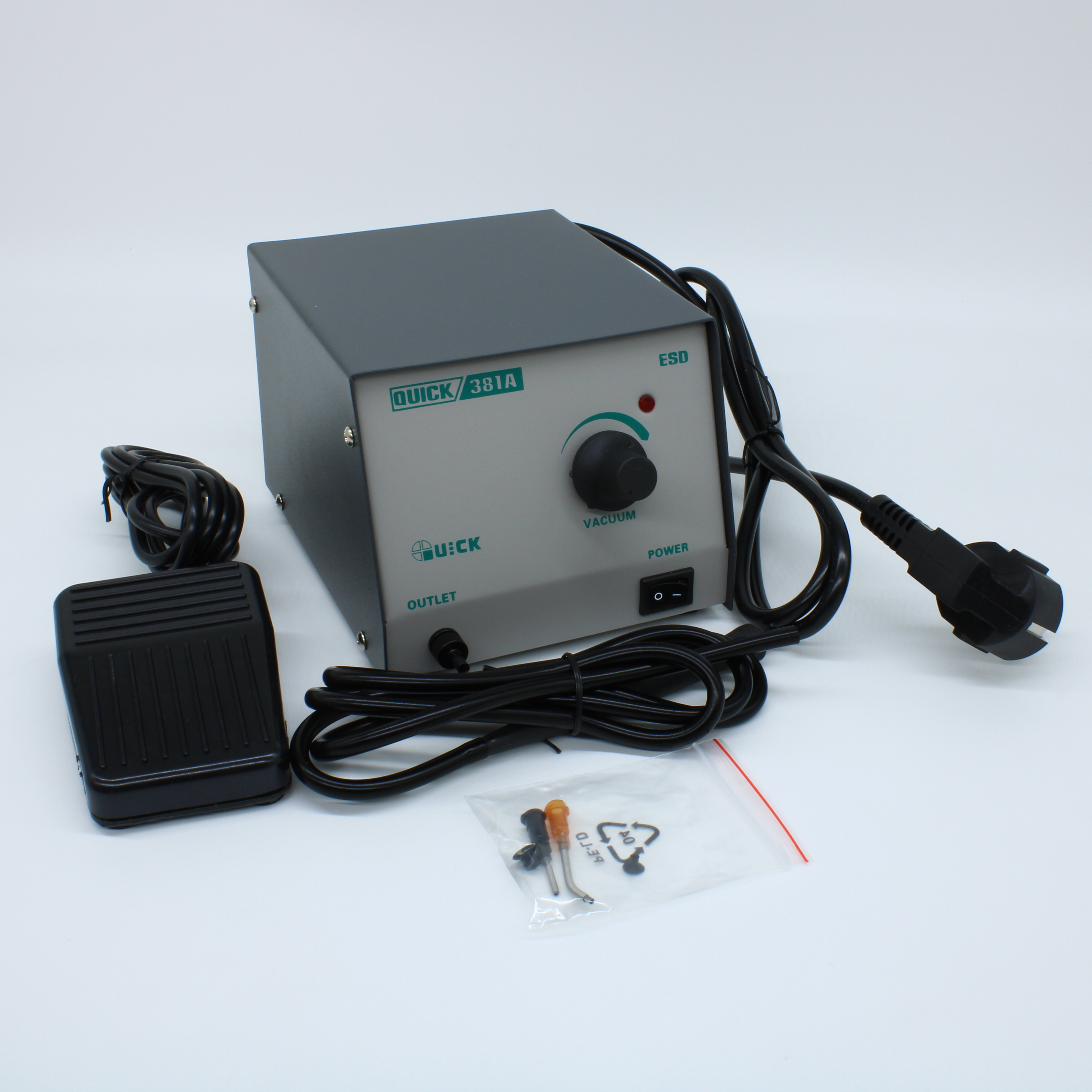 QUICK 381 A ESD - Вакуумный пинцет, 7 Вт, со сменными насадками, управление по педали