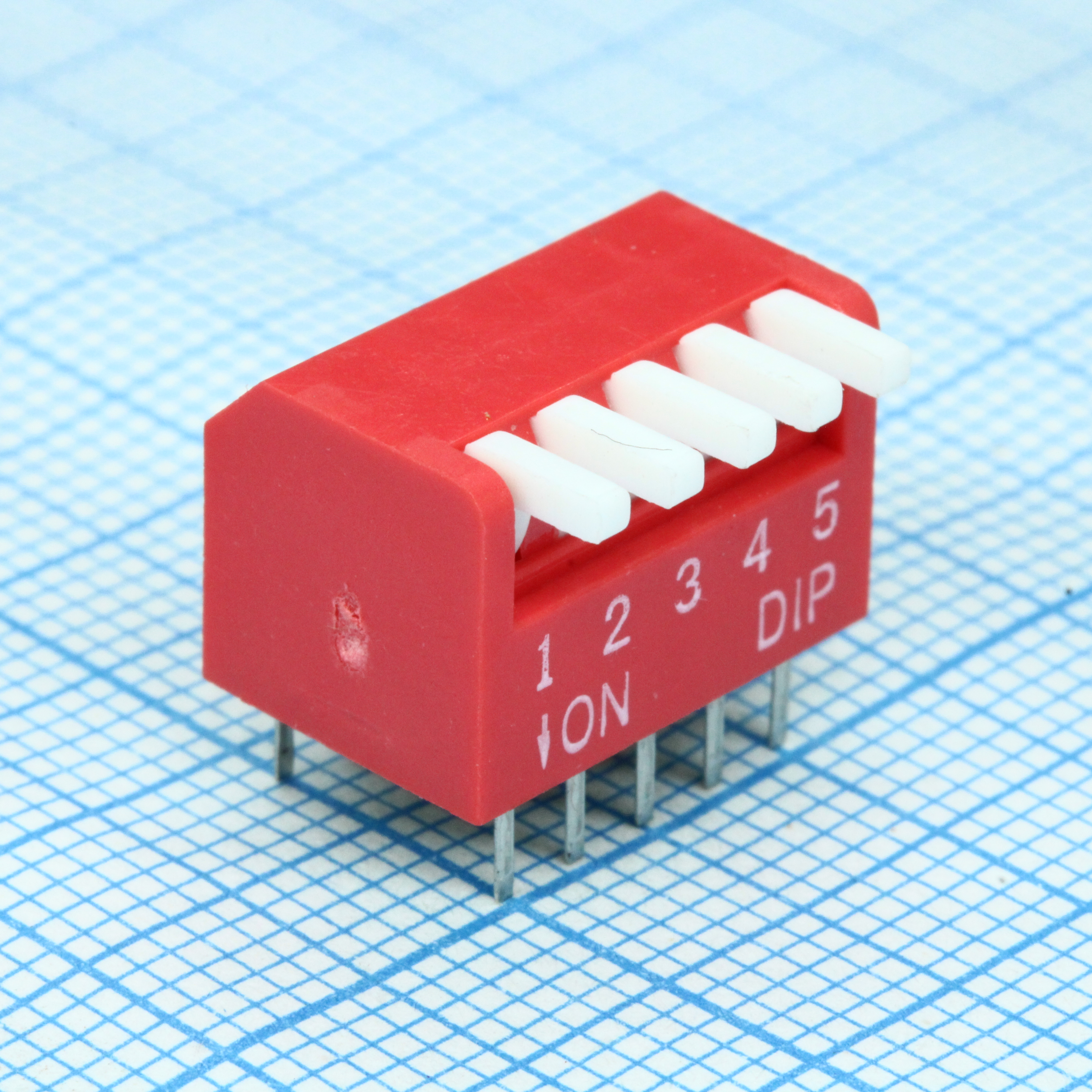 DIP-переключатель 5 групп красный монтаж в отверстие шаг 2.54мм 0.025А 24В с движком Piano