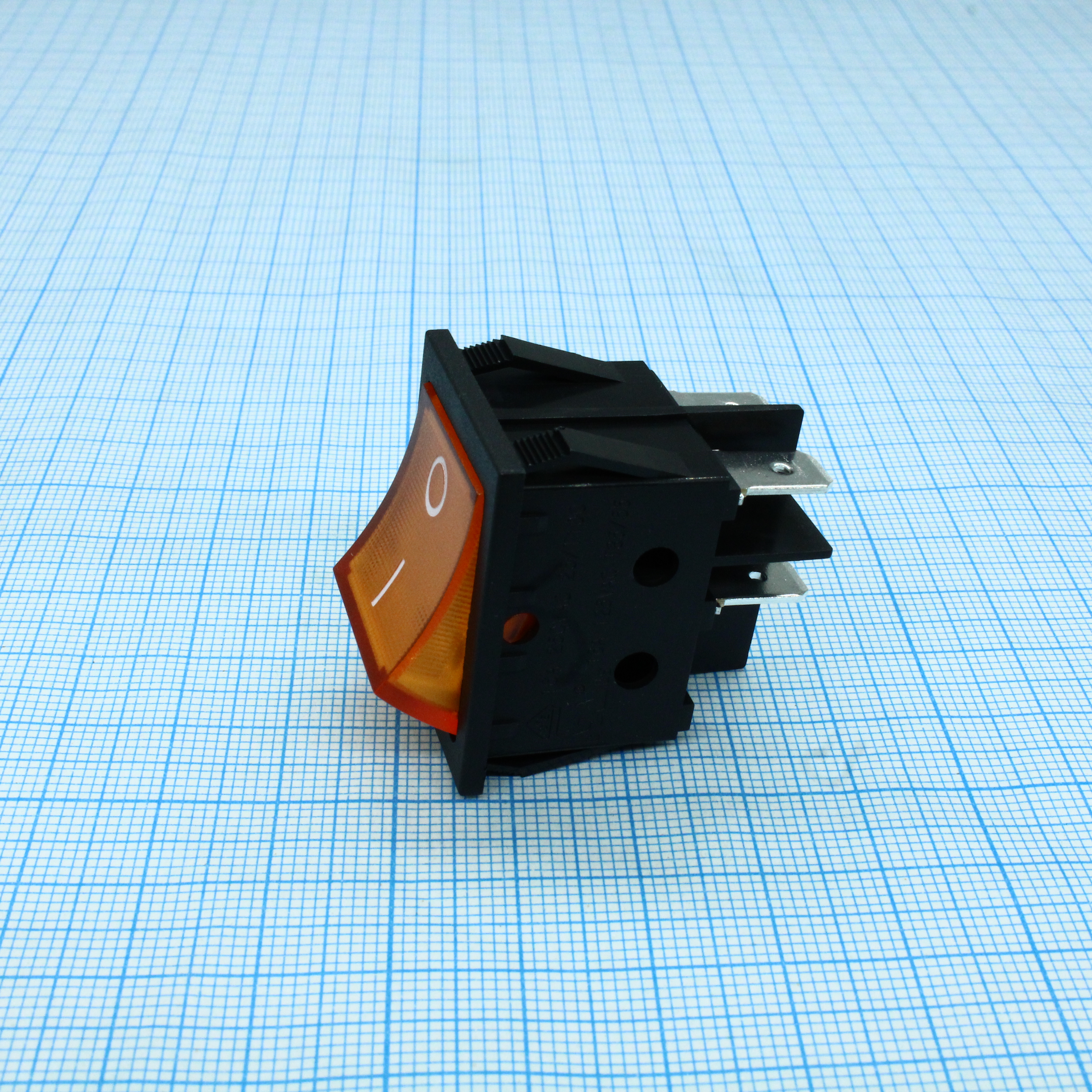 Выключатель клавишный ON-OFF без подсветки цвет корпуса (черный) цвет кнопки (оранжевый)