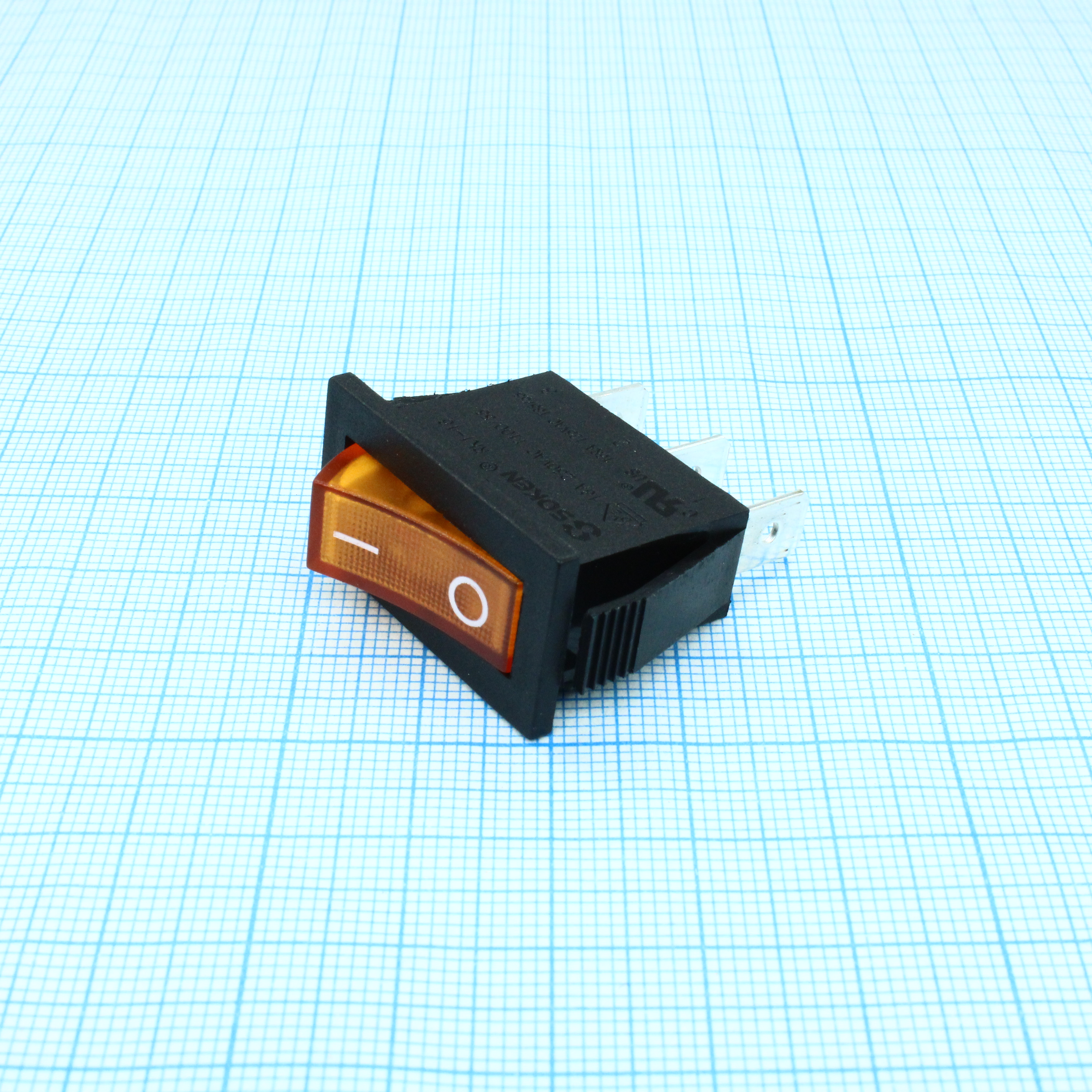 Выключатель клавишный ON-OFF с подсветкой цвет корпуса (черный) цвет кнопки (оранжевый)