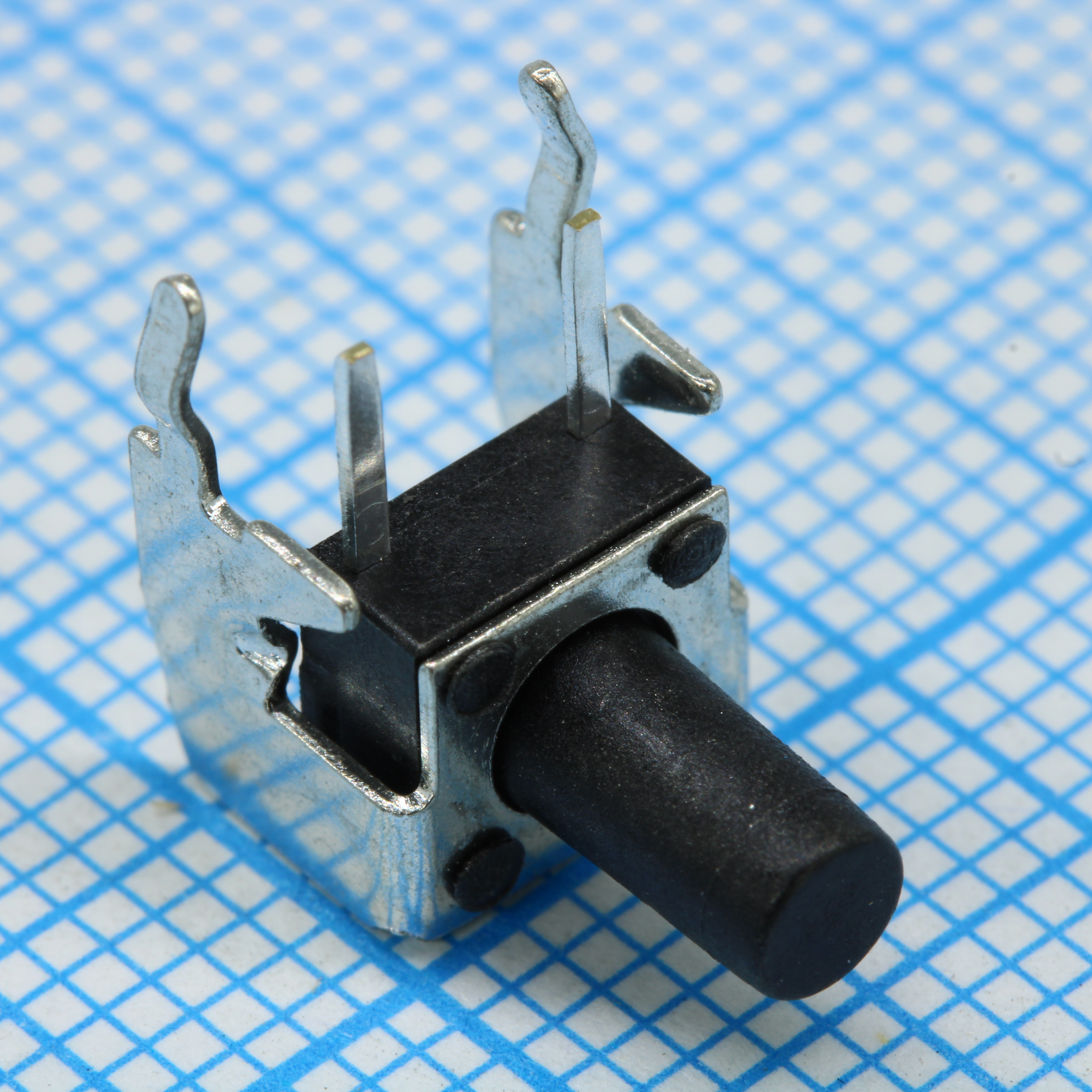 Кнопка тактильная 7.3х7.1х3,85мм угловая h=5.85мм усилие нажатия160гр 0.05A 12В монтаж в отверстие