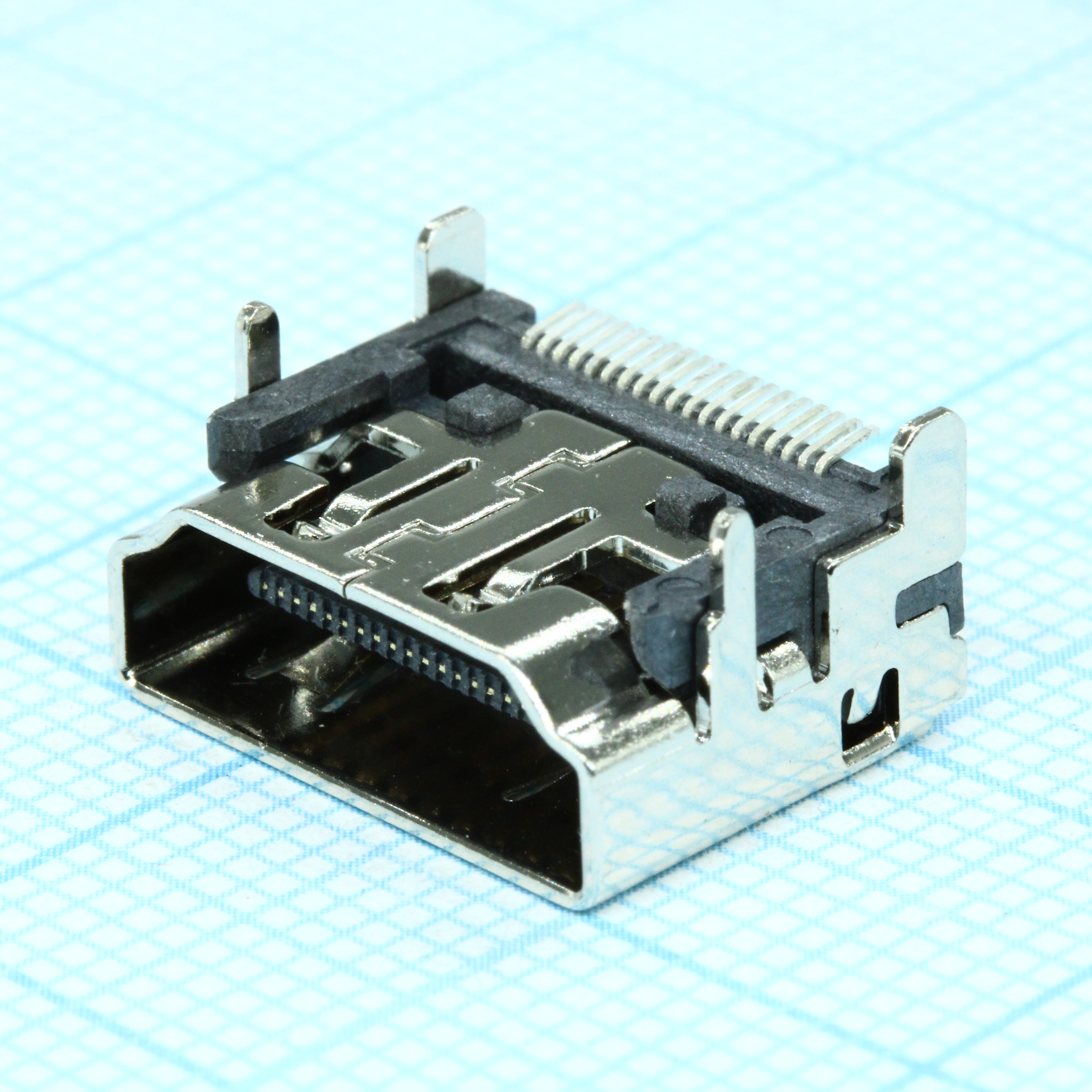 Разъем HDMI розетка угловая на плату, 19 контактов, SMD