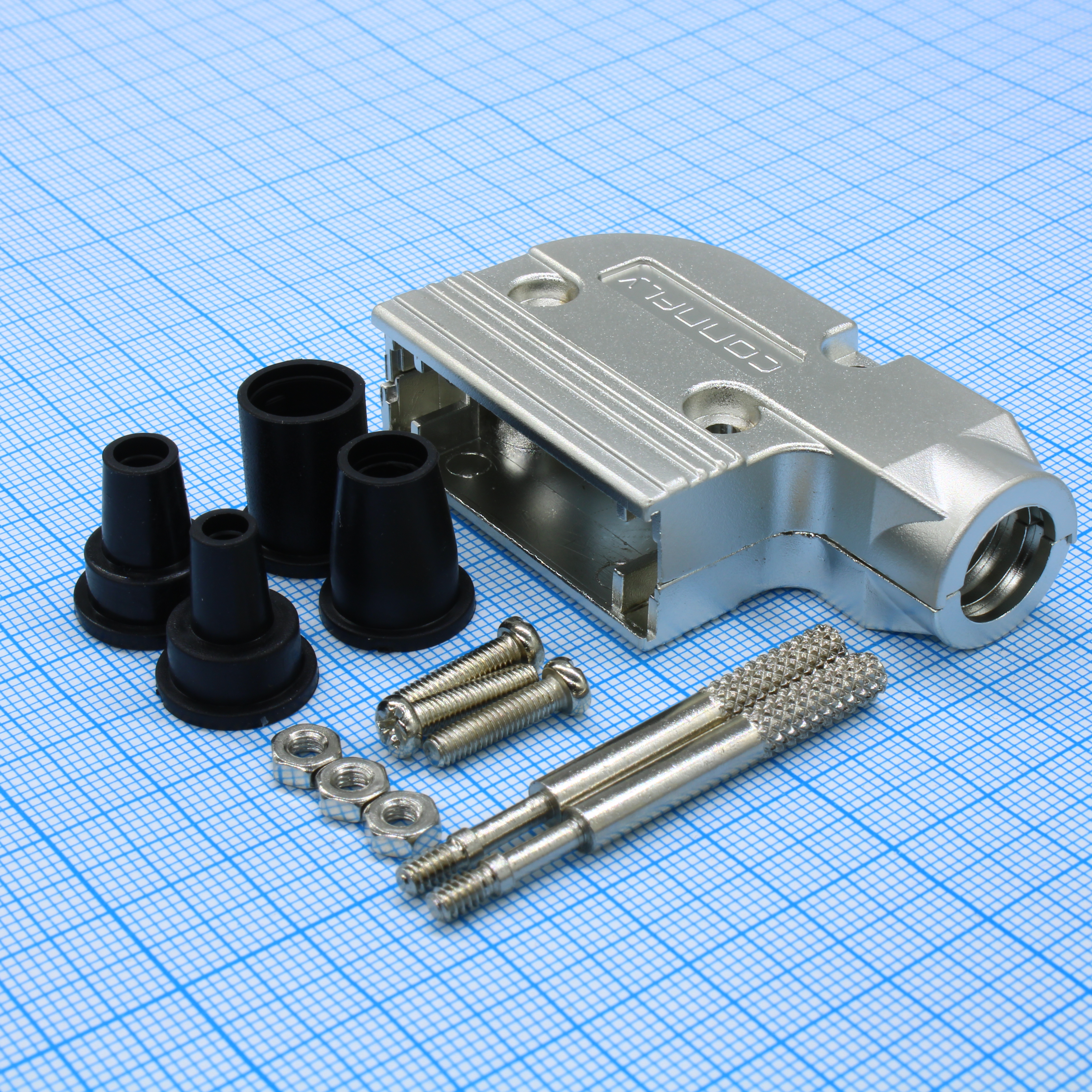 DS1047-01-15M2 - Кожух для разъема D-Sub 15pin с удлиненными винтами, металлизированный угловой