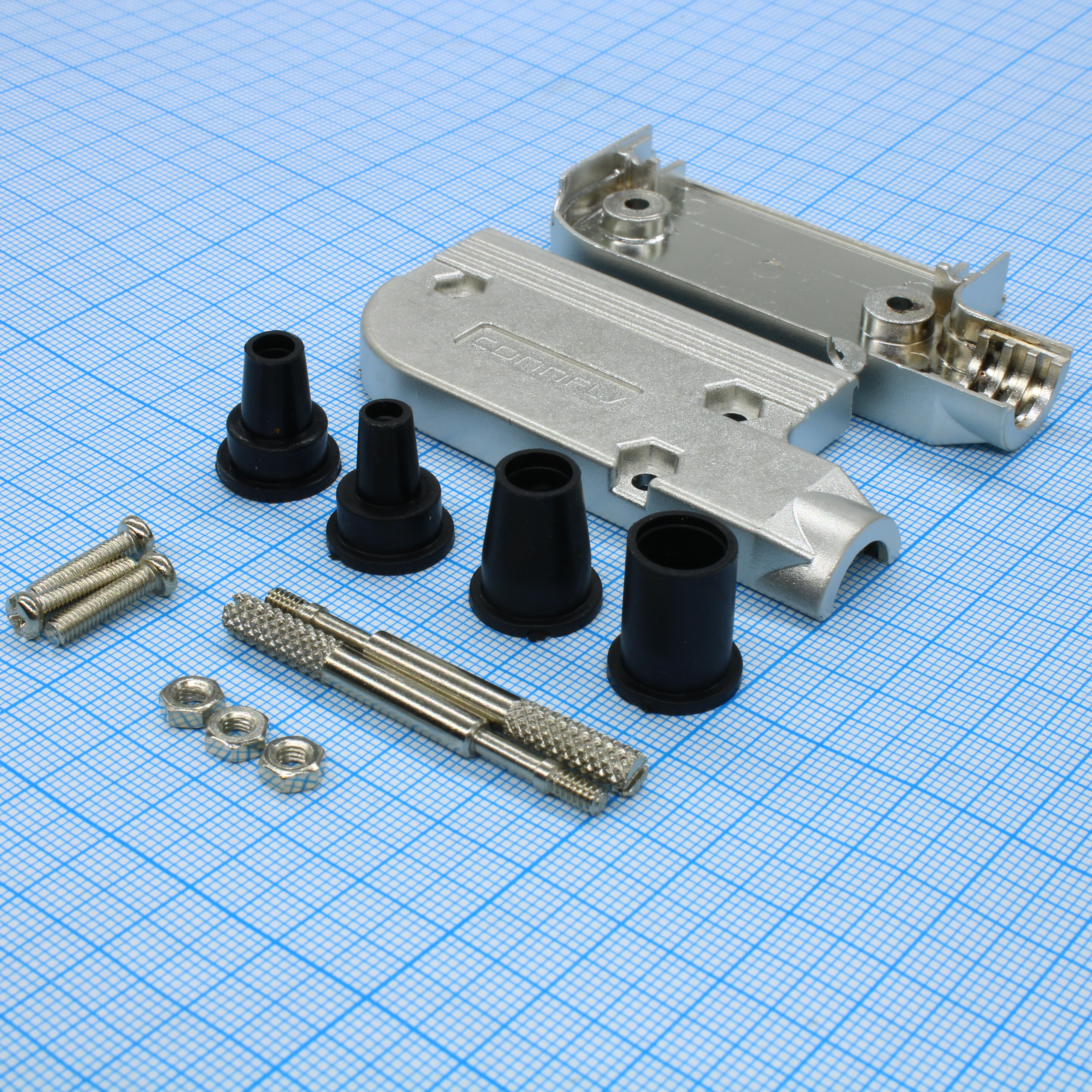 Кожух для разъема D-Sub 25pin с удлиненными винтами, металлизированный угловой
