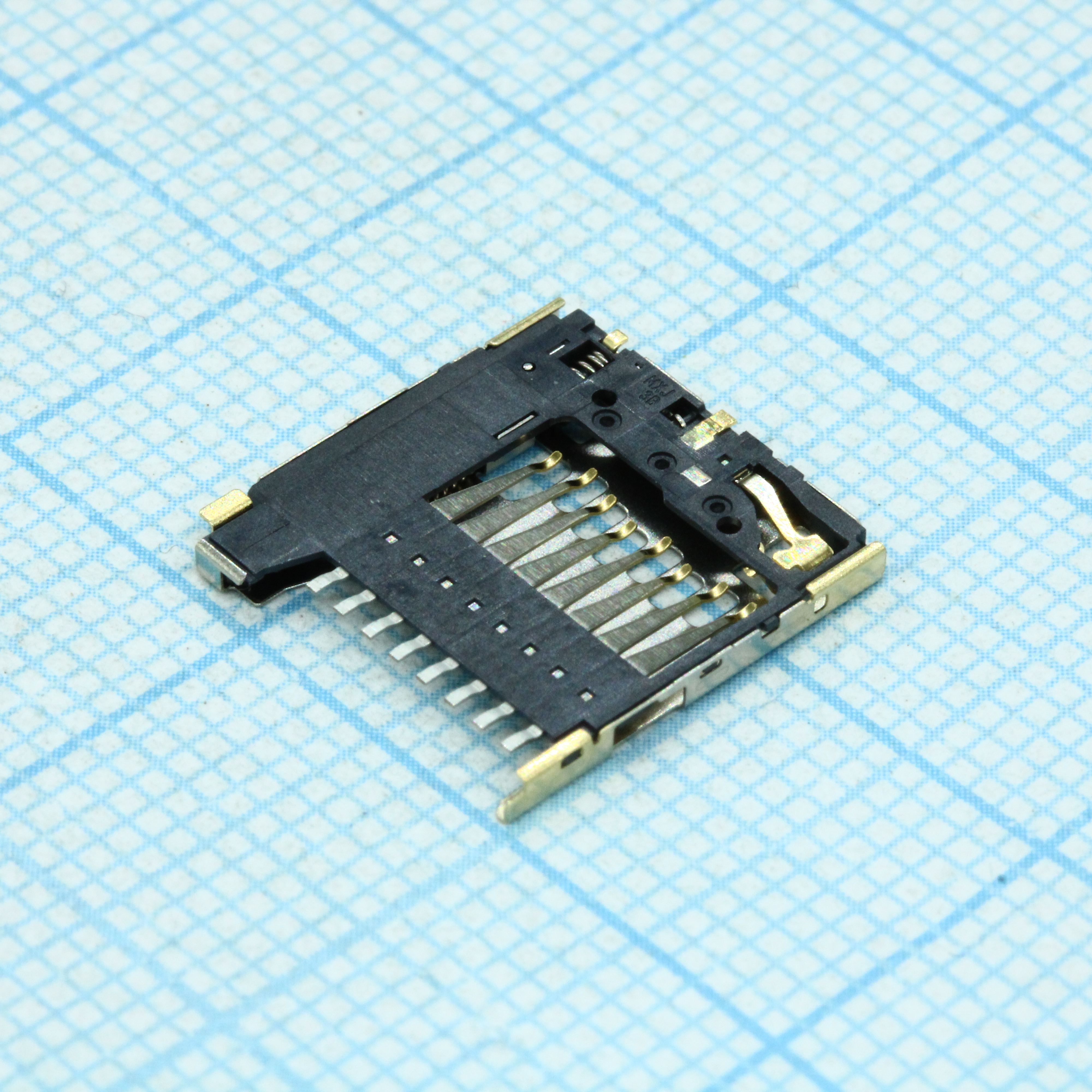 Гнездо памяти Micro SD Card M 8 контактов 1.1мм угловое для поверхностного монтажа ток контакта 0.5A лента на катушке