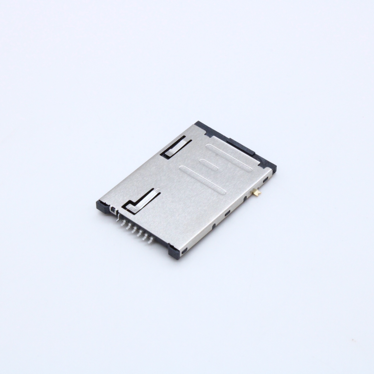 Разъем (картоприемник) SIM 6 конт. тип "Push-Push" (с контролем карты, 2 конт.), поверхн. монтаж на плату (с фиксат. в отверст. платы), H = 2.0 мм