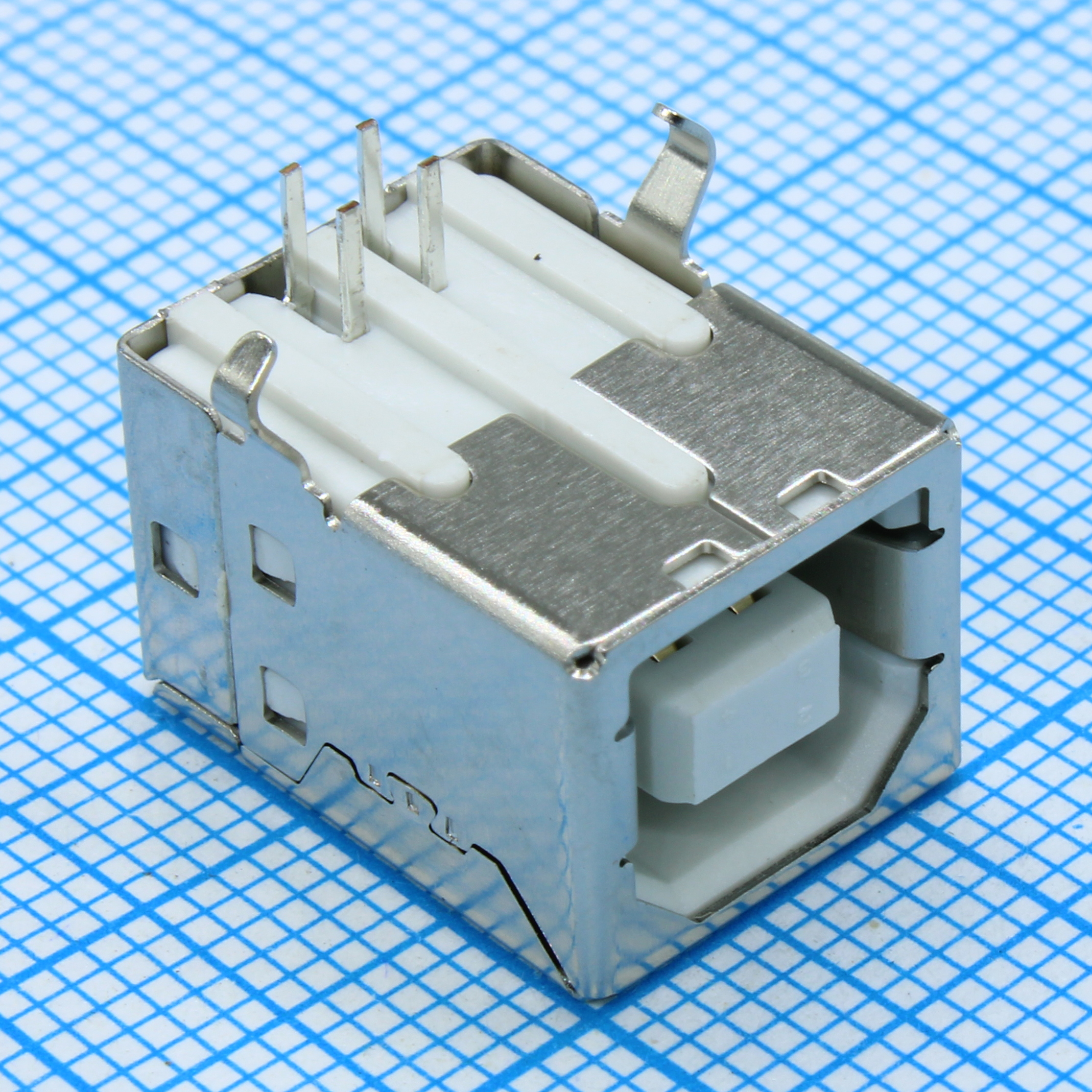 Разъем USB тип B розетка на плату белая, угловая