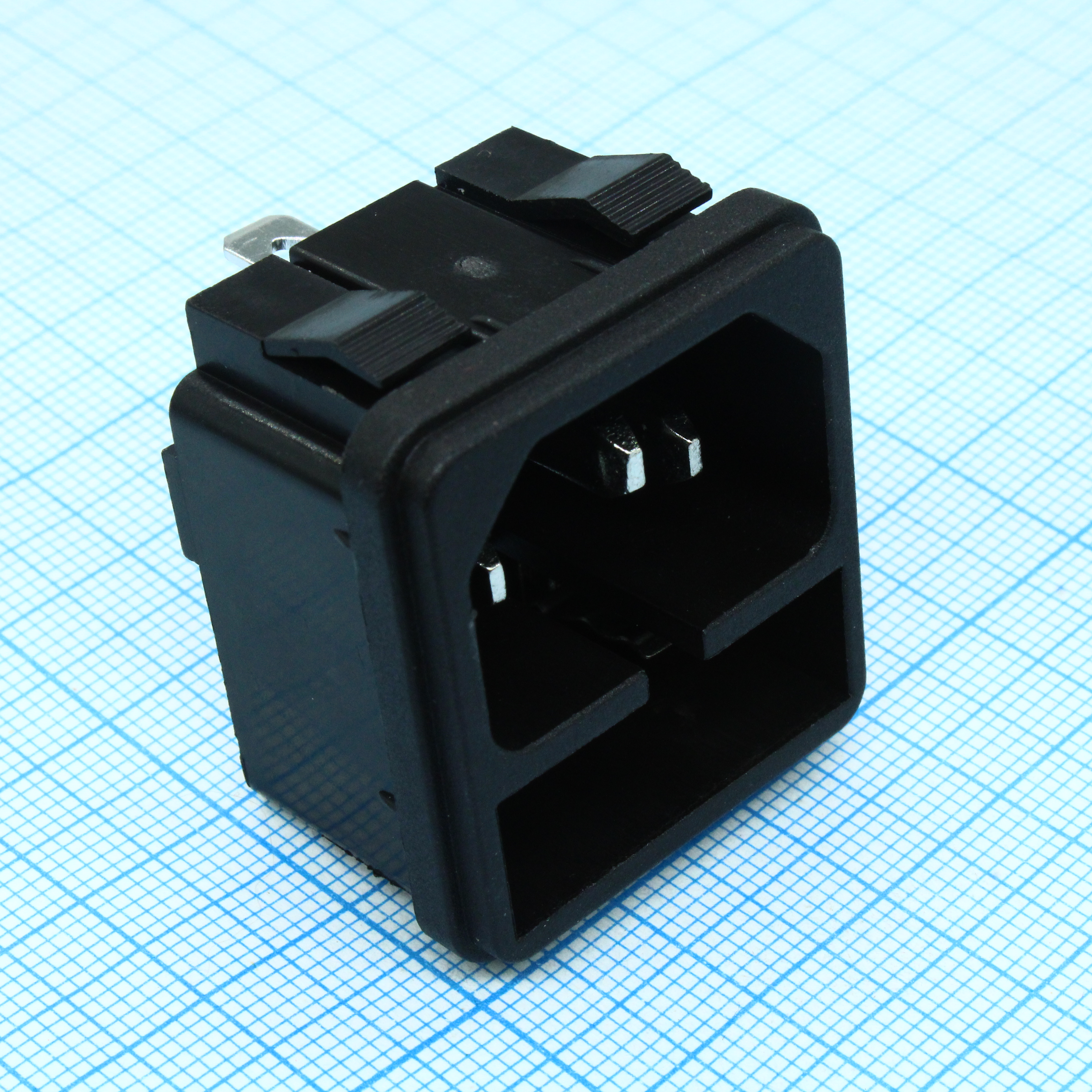 Разъем 220В вилка на блок, 3 контакта, с предохранителем крепление защелка