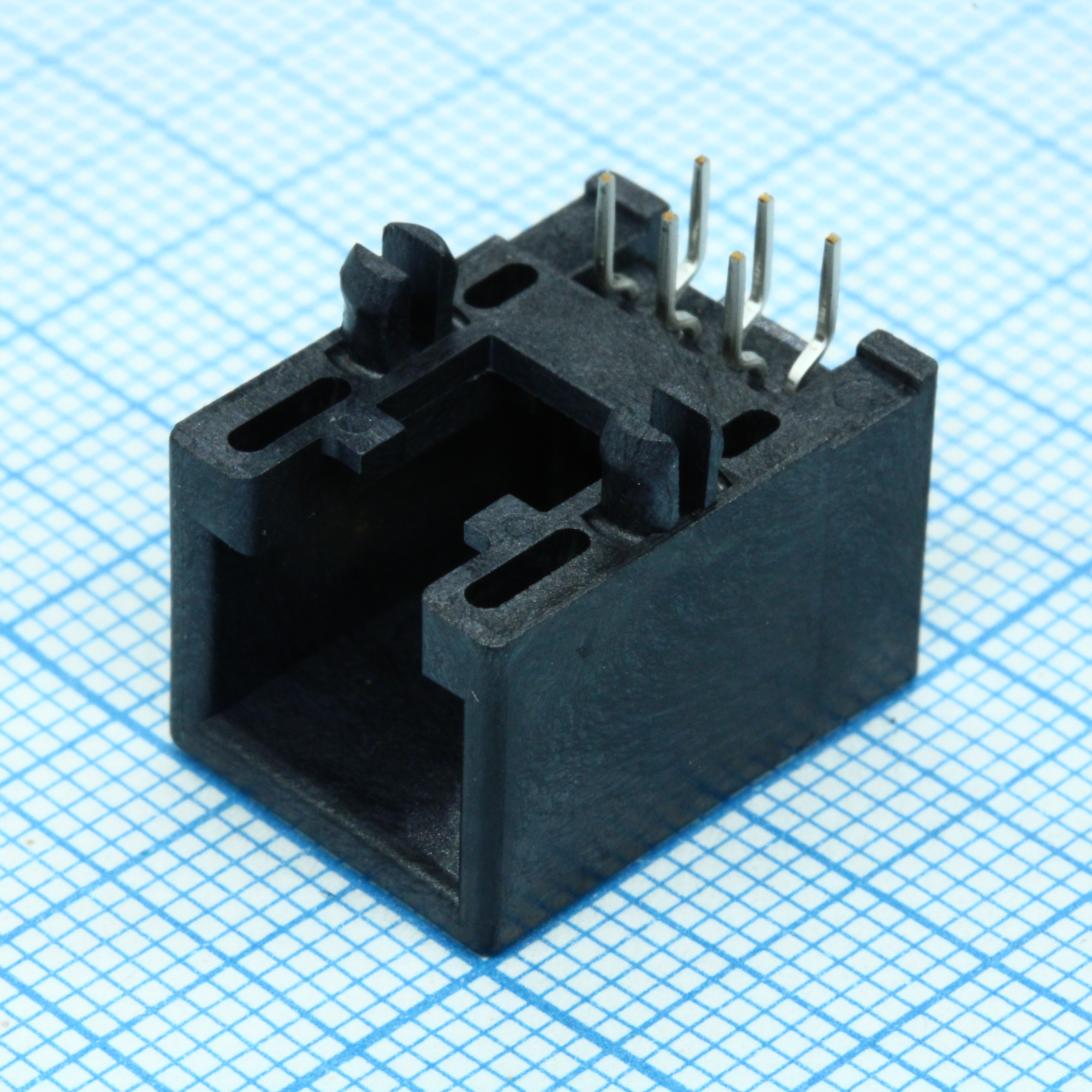 Розетка на плату RJ-12 6 контактов шаг 2.54мм угловая монтаж в отверстие 6 терминалов 1 порт лоток