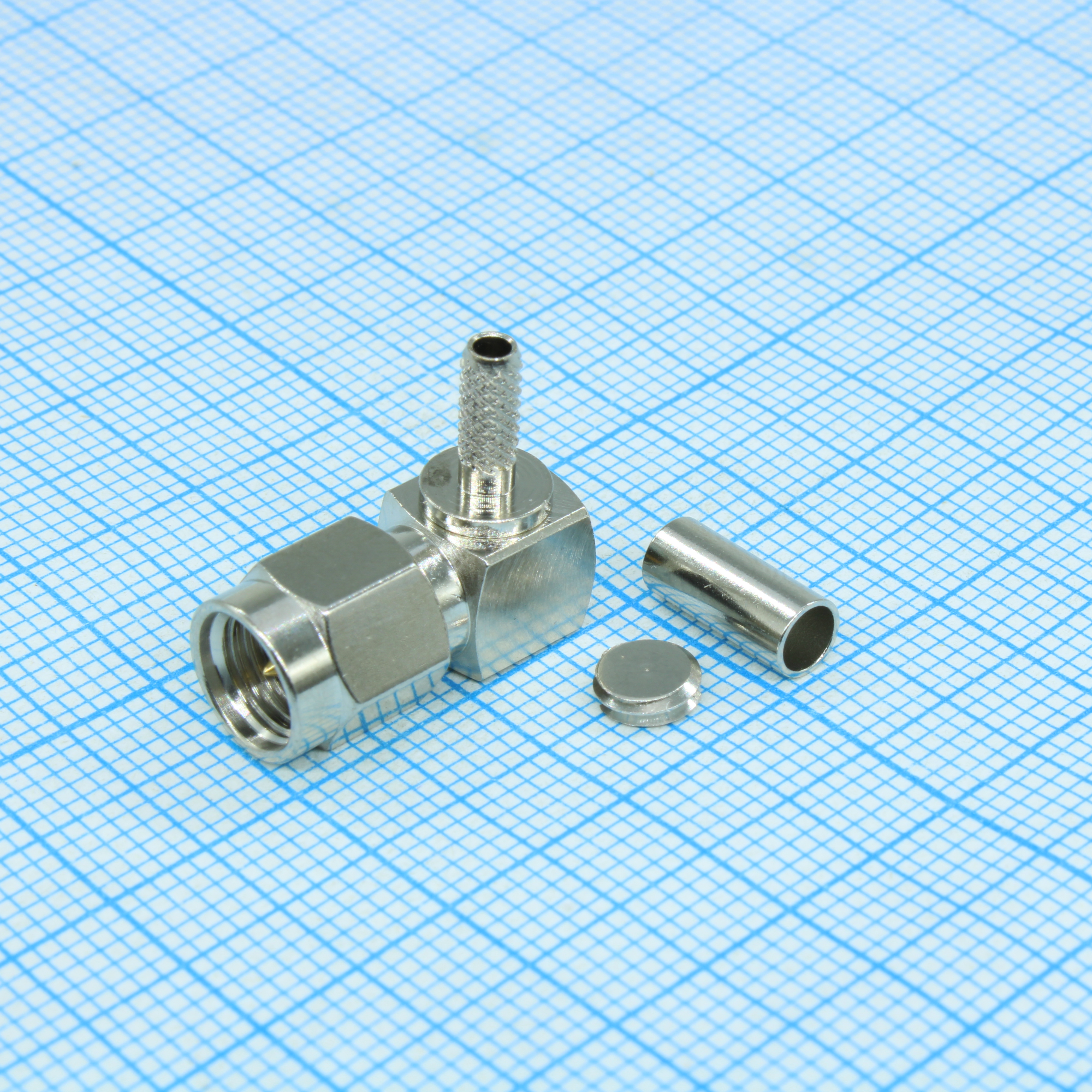 SMA-LC174P - Разъем SMA вилка на кабель RG-174, обжимной, Г-образный