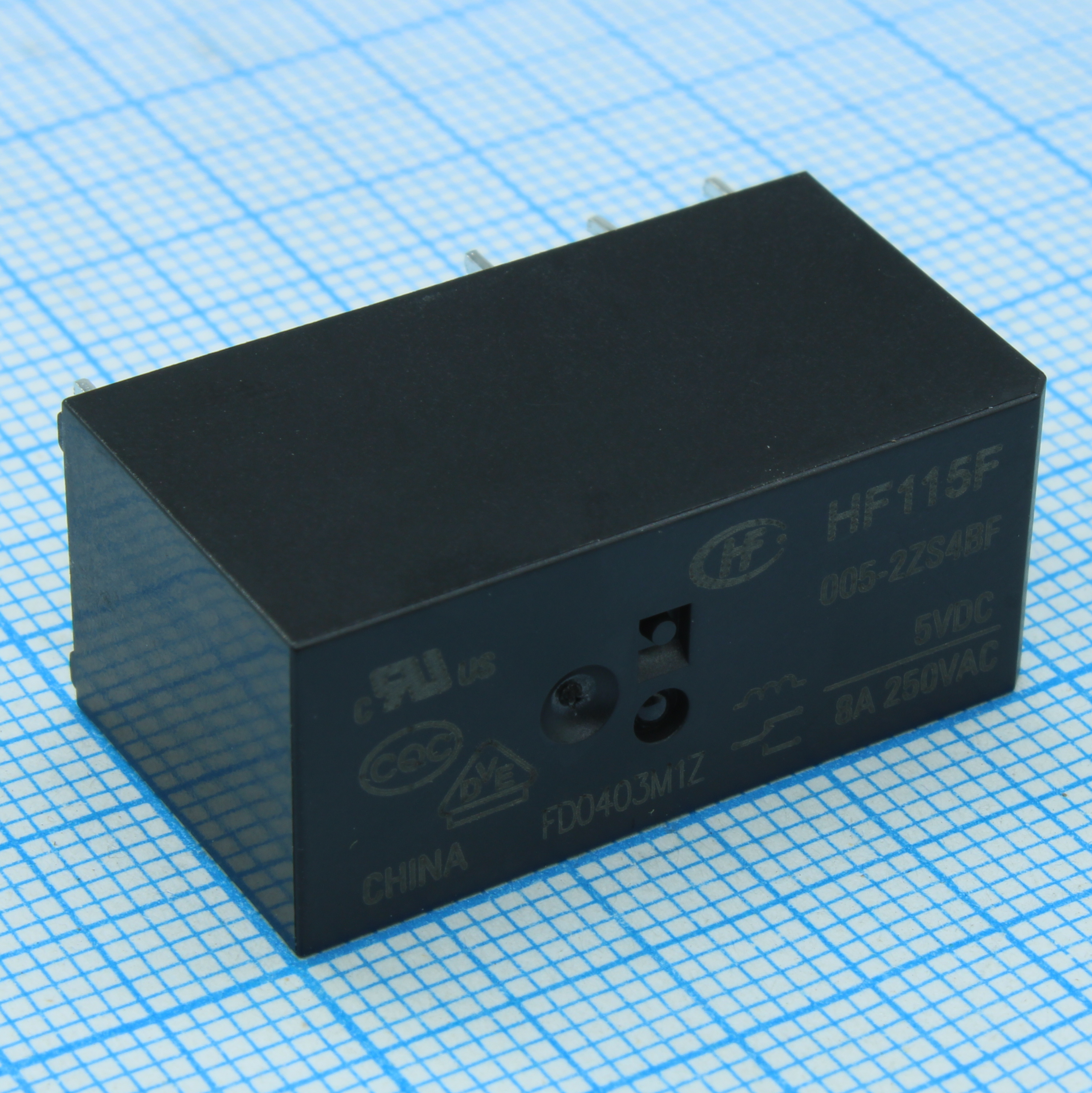 HF115F/005-2ZS4BF - Реле силовое, 8 A, 5 В, две группы на переключение (29x12.7x15.7)мм монтаж в отверстие