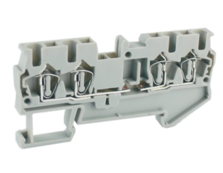 Проходная клемма UJ5-4/2X2-U - Проходная клемма, 4 точки подключения в клемме, тип фиксации провода: пружинный, номинальное сечение: 4 мм кв., 40A, 800V, ширина: 6,2 мм, цвет: серый, тип монтажа: