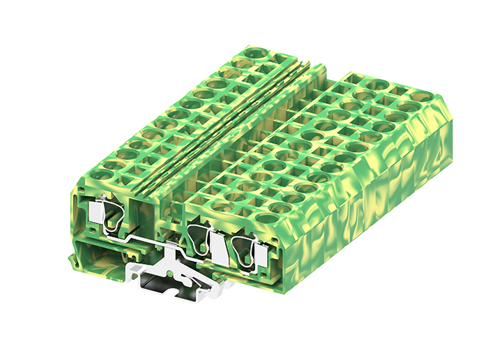 Заземляющая клемма 210957 - Заземляющая клемма, TA10-1-2, 3 точки подключения, тип фиксации провода: пружинный, номинальное сечение: 10 мм кв., ширина: 10 мм, цвет: желто-зеленый, тип монтажа: DIN 35