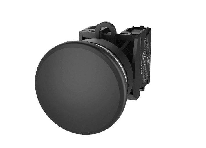Кнопка грибовидная, без блокировки, без подсветки, алюминиевое переднее кольцо, с мгновенным нажатием, с контактной группой 2NO, диаметр головки кнопки 40 мм, диаметр посадочного отверстия: 22 мм, цвет: черный