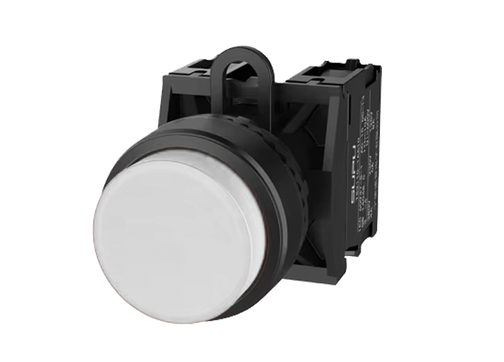 Кнопка круглая выпуклая, без блокировки, без подсветки, пластиковое переднее кольцо, с мгновенным нажатием, с контактной группой 1NO, диаметр головки кнопки 29,5 мм, диаметр посадочного отверстия: 22 мм, цвет: белый