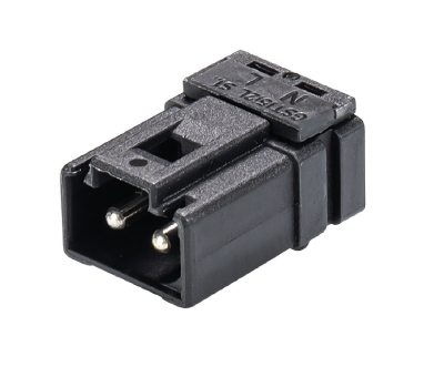 Разъём GST15I2L S1H SW - Вилочный разъем под пайку, 2 полюса, угол 90 гр., номинальное напряжение: 250V, номинальный ток: 16A, цвет корпуса: черный, цвет контактной вставки: черный, серия gesis GST15i2