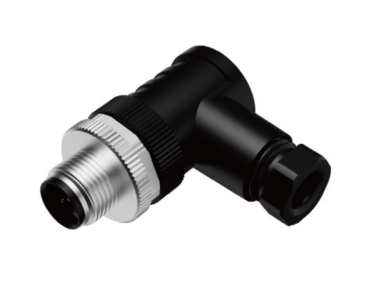 Вилочный разъем на кабель, 12 полюсов, M12, угловой, A-Code, диаметр кабеля: 6,0-8,0 мм, 1,5А, 30V, корпус из пластика, резьбовое соединение: цинк