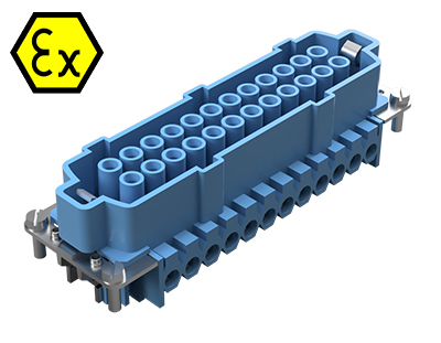 Розеточная контактная вставка взрывозащищенного разъема REVOS Ex, Size 24, винтовая фиксация, с защитой провода, 24 полюсов + РЕ, 90 V, до 16 A, тип покрытия контактов: золото