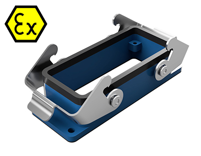 Открытое основание разъема EX 70.320.1628.9 - Основание разъема на панель, открытое, типоразмер 16B, взрывозащищита, с уплотнителем, с двумя защелками, без защитной крышки, материал корпуса: цинковый сплав