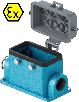 Закрытое основание разъема EX 70.345.1036.0 - Основание разъема на панель, закрытое, типоразмер 10B, взрывозащищита, с уплотнителем, 1 кабельный ввод M25x1,5, IP54, с левым расположением, без защелок (упоры для двух защелок), с защитной крышкой, материал