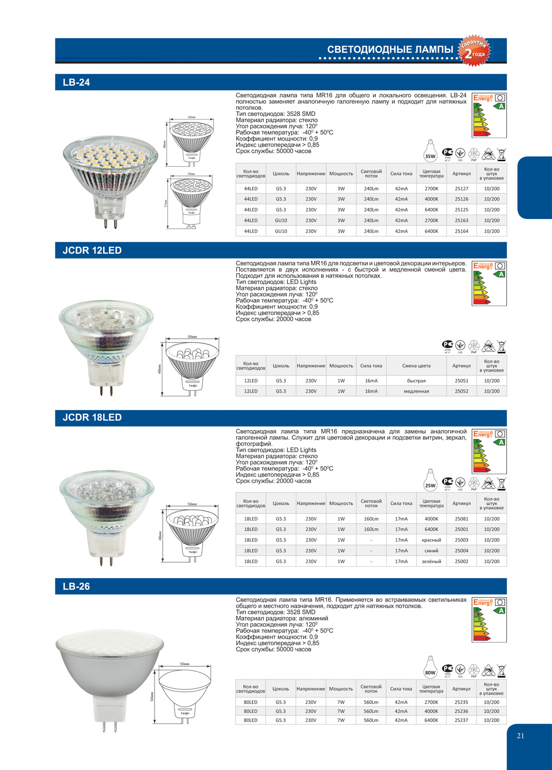 Лампа светодиодная LED 7вт 230в G5.3 белая 25236