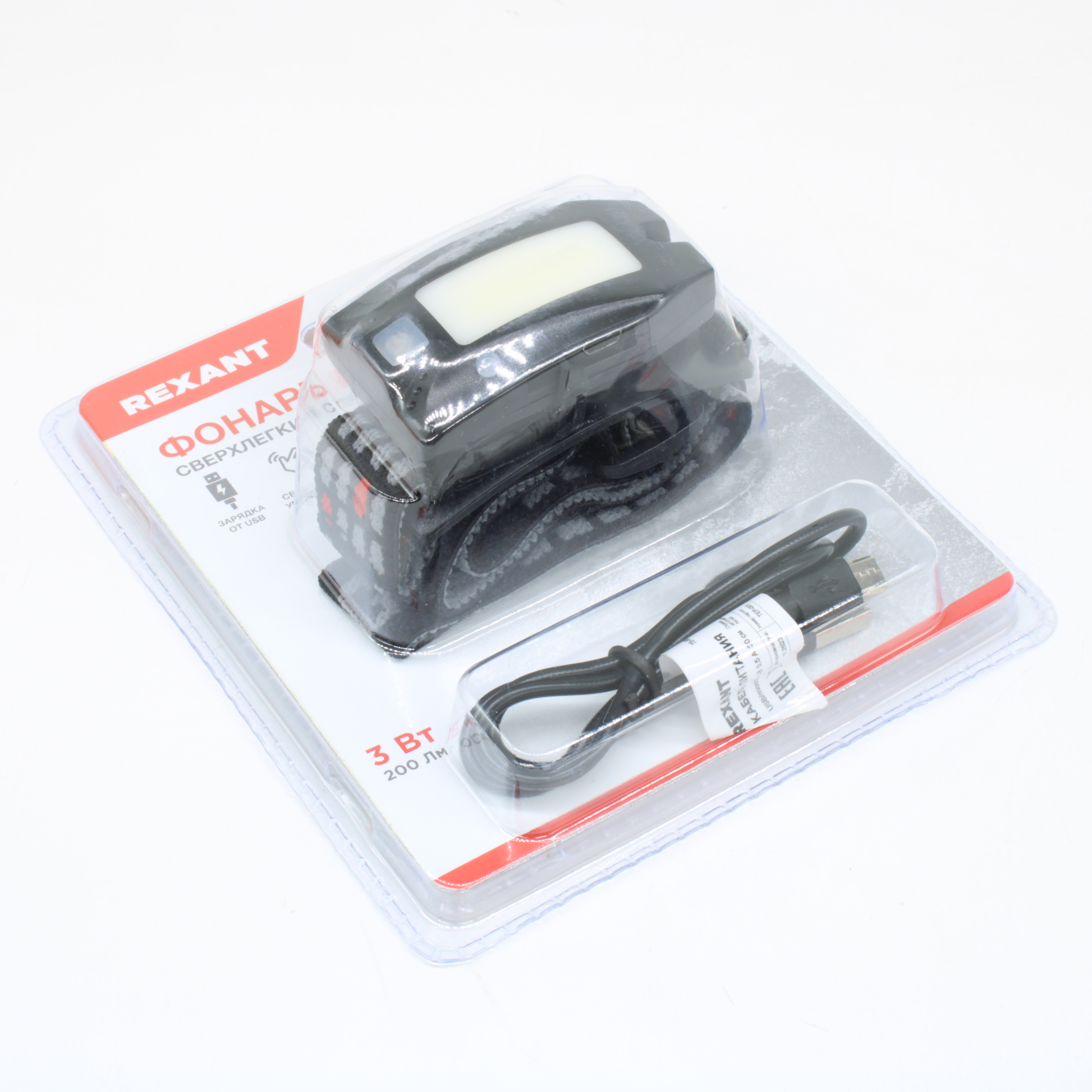 Фонарь налобный сверхлегкий с прищепкой 75-8011