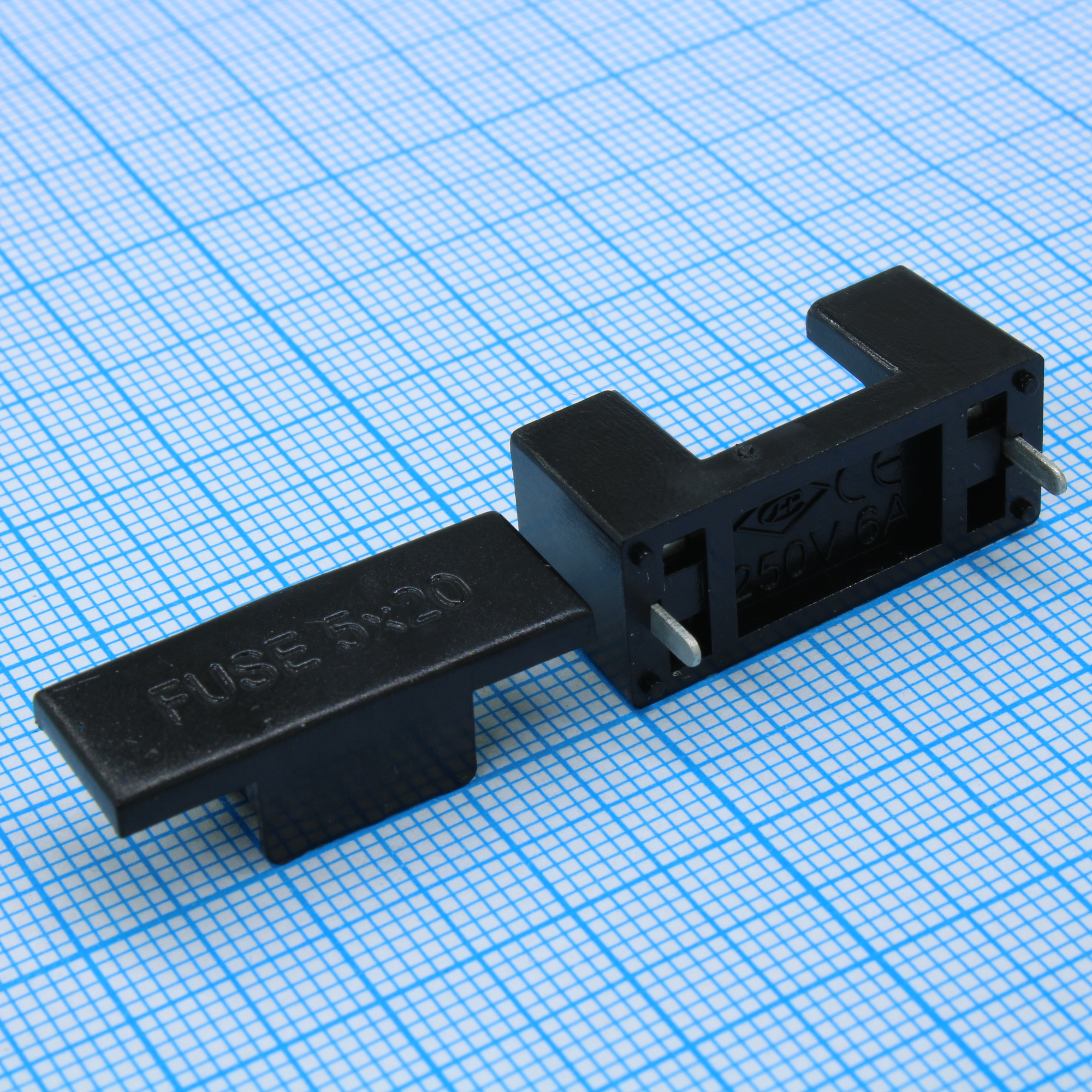 Держатель предохранителя 5*20mm, с крышкой, монтаж на плату, 250V, 6,3A